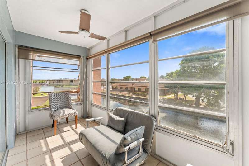 WELCOME HOME! This 1BD/1.5BA Sunrise Lakes Phase 3 unit features an enclosed patio with a tranquil canal and garden views. Located on the third floor near the clubhouse, it offers an open living/dining space ideal for entertaining and a spacious kitchen with wood cabinets and granite countertops. The master suite includes a walk-in closet, plus a guest half bath. Enjoy 55+ resort-style living with pools, tennis, pickleball, saunas, a fitness center, theater, billiards, BBQs, and more. Close to shopping, dining, beaches, and medical care. Don't miss it—schedule a showing today! Furniture Negotiable. EASY TO SHOW!