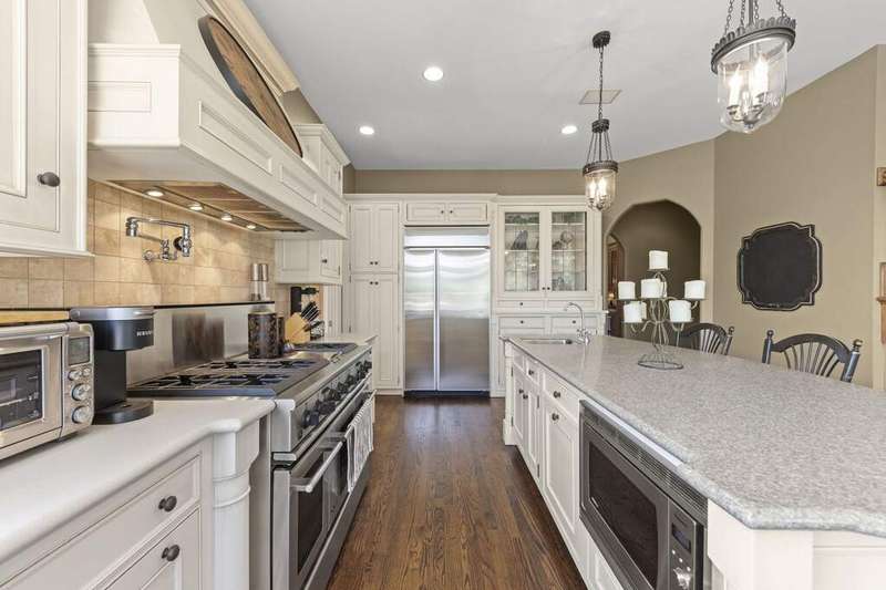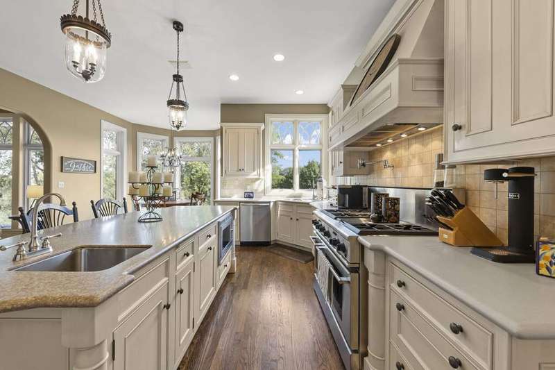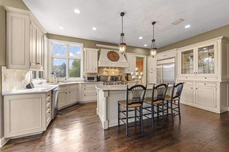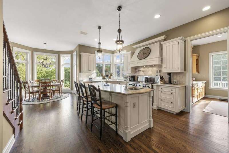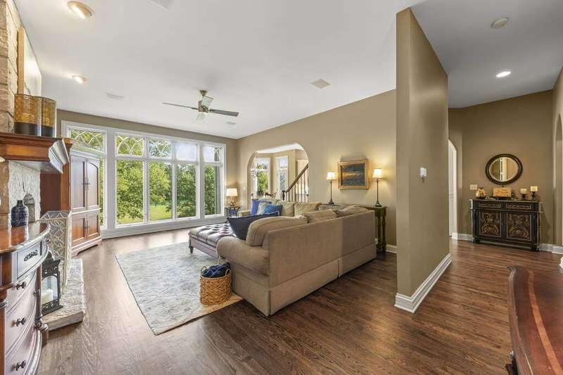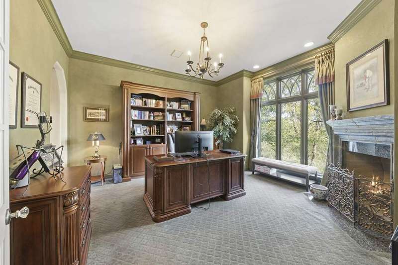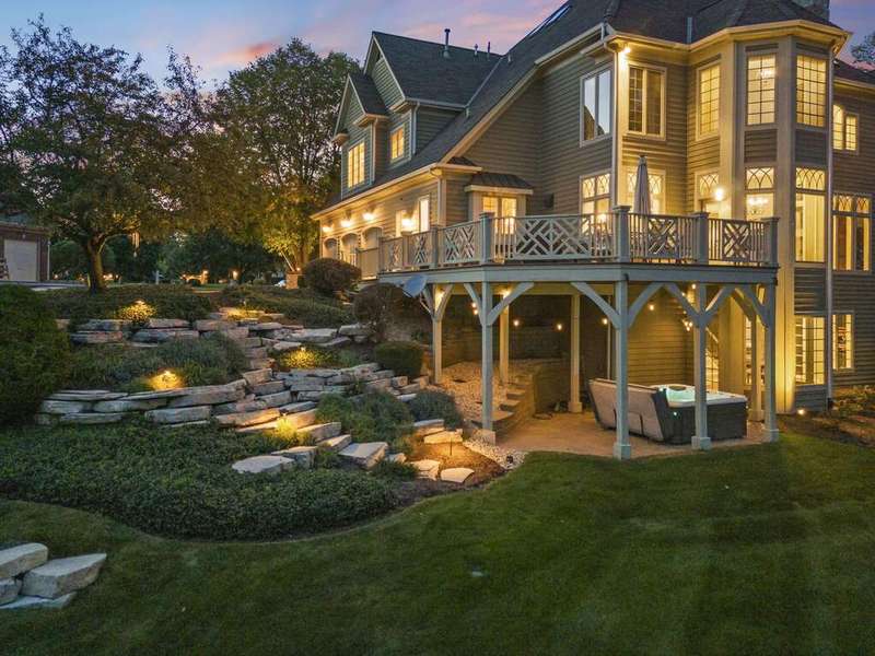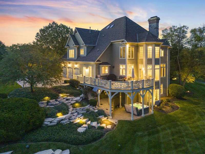 Welcome to Fryendall Court, where luxury living makes its presence known the moment you arrive. Nestled within the award-winning District 304 schools, this former Cavalcade model home is one of Mill Creek's most impressive residences. Situated on a quiet cul-de-sac with a private lot, this expansive estate offers over 7,000 square feet of thoughtfully designed living space. Step inside the grand entry with double doors where you are greeted by soaring 20' ceilings and light-filled rooms, including a formal dining room and elegant front sitting room. A true executive's retreat, the first-floor office features its own fireplace and flows seamlessly into the inviting family room. The timeless kitchen is a chef's and entertainer's dream, complete with endless counter space and a 9' island, abundant cabinetry, custom vent hood and pot filler, a true butler's pantry, and an adjoining eating area that opens to a brand-new deck perfect for gatherings and crisp fall evenings. Conveniently located off the garage, the spacious mudroom provides generous storage and an ideal drop zone for busy lifestyles. Enjoy 10' ceilings throughout the main level and 8' solid doors throughout the home. Head upstairs via either staircase where you will find four bedrooms, highlighted by a breathtaking primary suite with soaring 20-foot ceilings. This private retreat includes a versatile loft space, sitting area, spa-like en suite, and dual walk-in closets. The additional bedrooms are equally impressive, including two connected by a Jack-and-Jill bath. A standout feature of this home is the separate in-law suite-a private apartment with its own entrance, full kitchen, living space, bedroom, and bath-perfect for extended family or long-term guests. The walkout lower level offers even more living options, with high ceilings, a dedicated workout area, flexible recreation space for movie nights, a full bathroom, and the option for an additional bedroom or playroom. Step outside to the private patio with hot tub and enjoy a quiet moment of relaxation. With hardwood floors throughout the main and second levels, three fireplaces, a 12-room audio system, and countless custom upgrades, every detail has been carefully designed. The exterior is equally stunning, showcasing custom stonework, a spacious driveway, and an oversized three-car garage (34'x22') with extra storage and dog wash station, epoxy floors and EV hookup capability. This is more than a home-it's a lifestyle, and one you'll be proud to call your own.