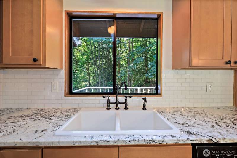 Motivated seller! Nestled in a peaceful, tree-lined neighborhood just minutes from vibrant downtown Issaquah, this beautifully updated 3-bedroom home offers privacy, nature, and modern style. Set on a secluded 3/4-acre lot with a creek below, enjoy outdoor living on the expansive deck. The upgraded kitchen boasts granite counters, stainless steel appliances, an island, and refreshed cabinetry. Throughout, solid oak wood flooring, fresh paint, stylish fixtures, and a renovated primary bath create a warm, move-in-ready space. This home is the perfect blend of tranquil charm and everyday convenience.