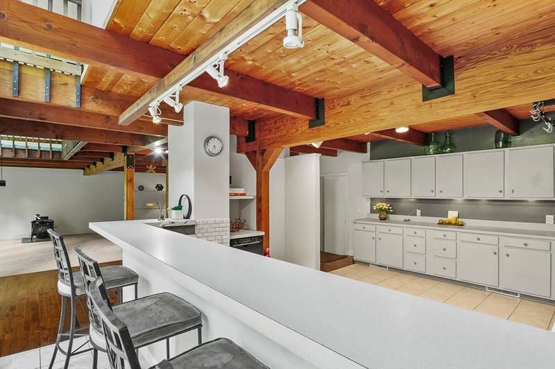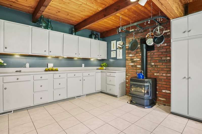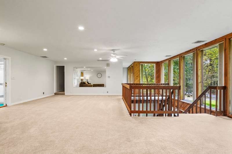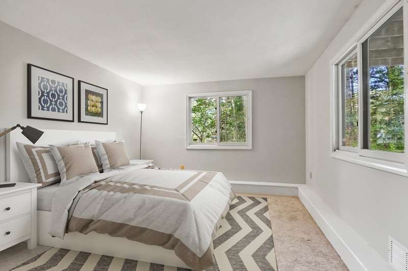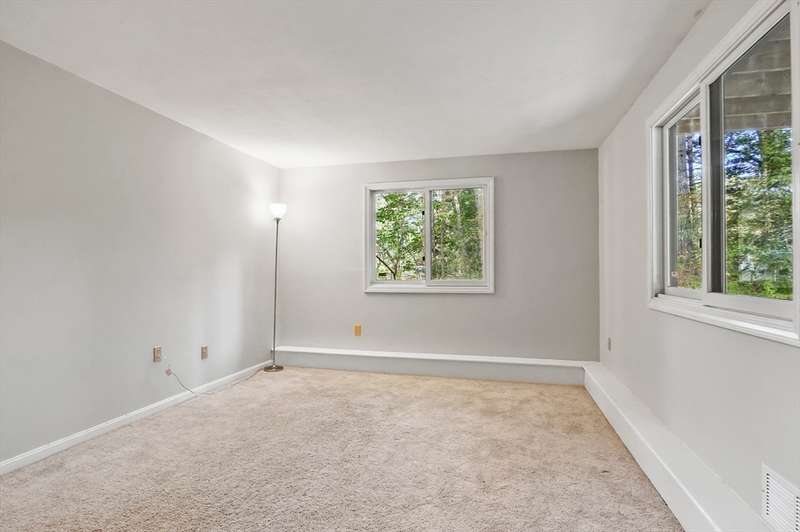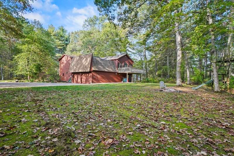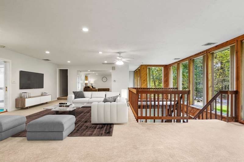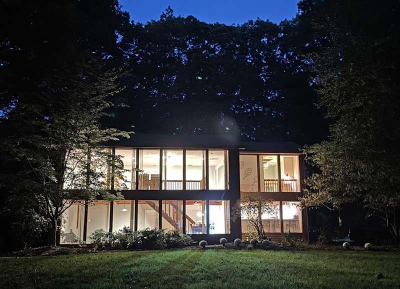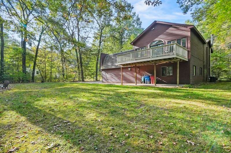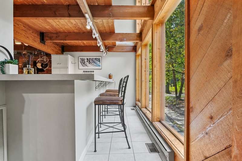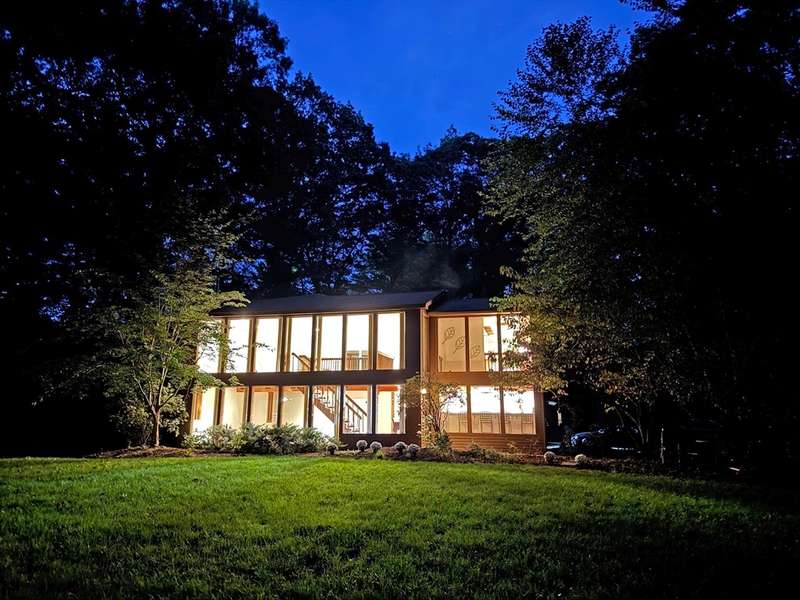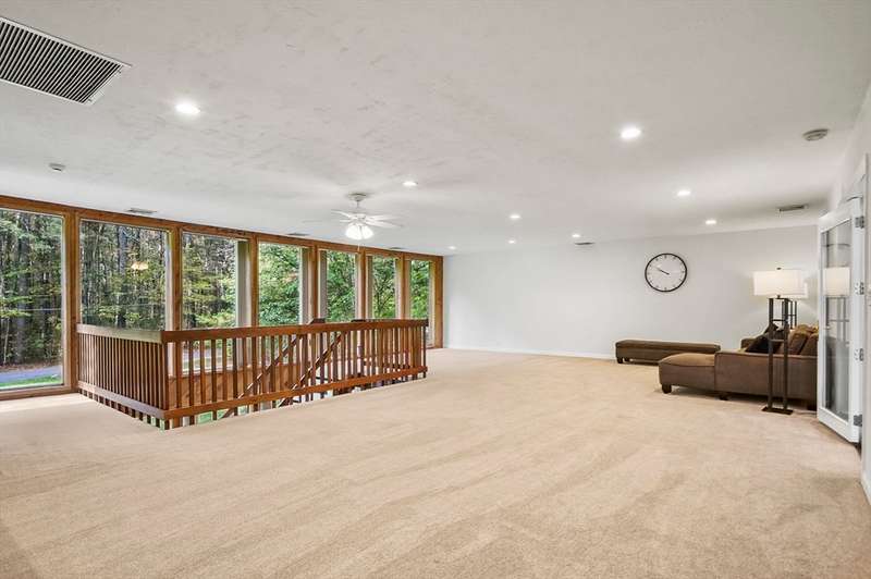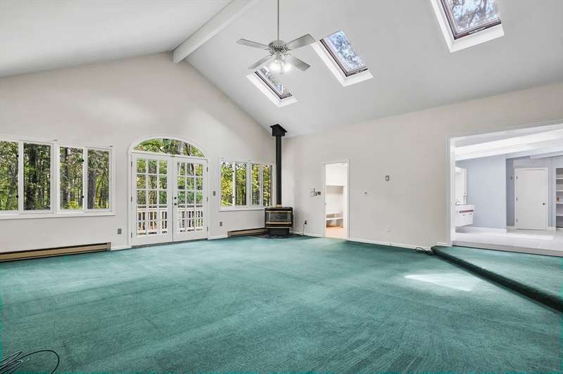 Wrapped in privacy, this stunning contemporary, beautifully set on nearly an acre abutting the state forest awaits! With 3,664 sq. ft. of living space, this home is designed to capture its natural surroundings. Soaring windows on both levels offer serene wooded views. 1st floor features a spacious living room w/ dramatic windows & exposed beams, wood stove, dining room, and well-appointed kitchen with gas stove, abundant cabinetry and seating for 6 at the breakfast bar. 2 bedrooms & a full bath complete the main level. Upstairs, the expansive family room provides space for multiple sitting areas & has a wall of windows. The 2nd floor office offers flexibility - large enough for a guest room too. The primary suite is a retreat of its own, featuring a private deck, cozy gas stove, oversized walk-in closet, & luxurious bath with a walk-in shower, dbl vanity, & generous storage. Add’l highlights include a 2-car garage w/ storage space, a rear patio, & tranquil wooded views from every room!