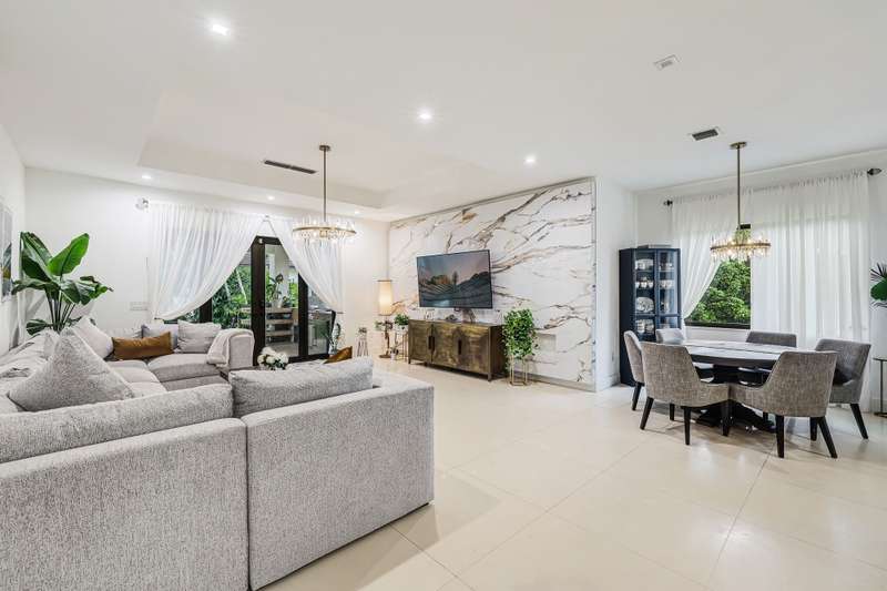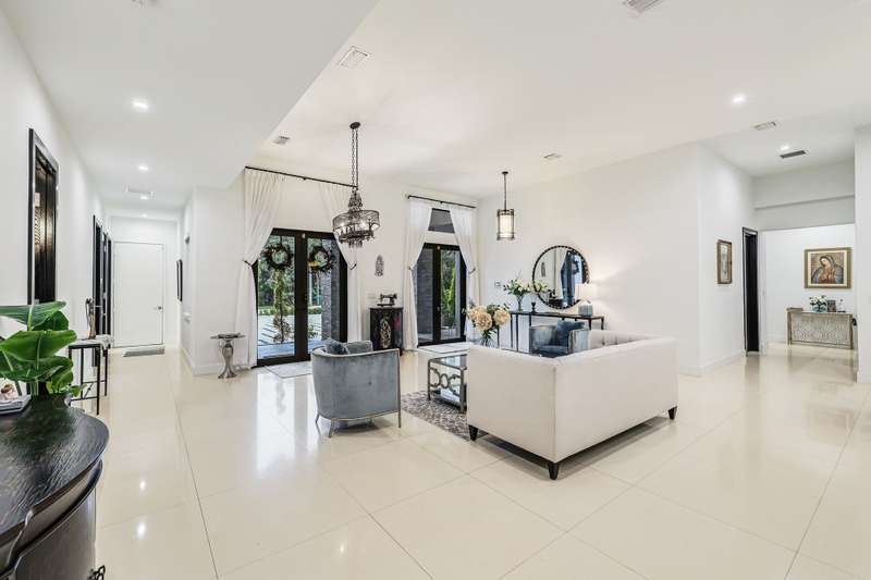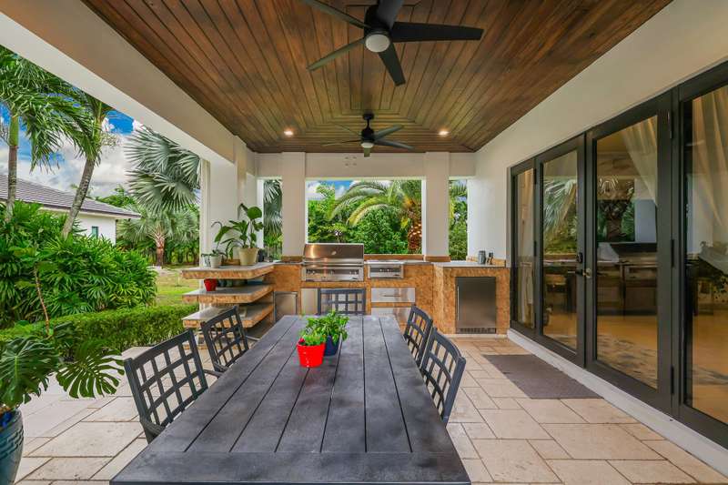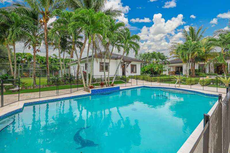 This impressive 10-acre Redland estate was meticulously constructed in 2017. It includes a 1,400 sq ft guest house. The primary residence spans over 5,583 sq ft with impact doors & windows. It features 4 bedrooms, 4.5 bathrooms, an office and a 2 car garage. Formal dining and living room has a built-in bar area, offering an elegant space. Each bedroom includes a private bathroom and walk-in closet. The chefs kitchen with solid wood cabinets and exquisite white quartz countertops. The expansive family room leads to an outdoor built-in BBQ and patio area. Travertine patio floors, pool, and fireplace area, ideal for hosting guests. This estate offers the privilege of residing in your own private paradise with a variety of tropical plants that allow you to experience nature at its best.