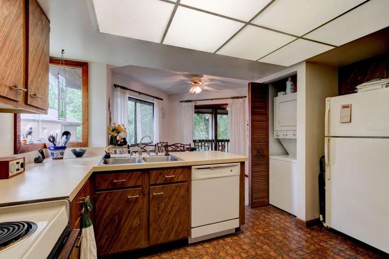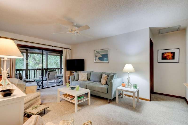 Welcome to this cozy furnished or can be sold unfurnished 2-bedroom, 2-bath second-story end unit condo, nestled beneath a stunning canopy of mature oak trees. This condominium community, Fairways, is a peaceful retreat that offers privacy, nature, and convenience all in one. The primary suite offers comfortable and privacy, while the second bedroom is ideal for guests or a home office. Two full bathrooms add to the functionality of the space. An automatic chairlift is included, providing easy access up the stepped stairway-ideal for those seeking added convenience and mobility. Please note that the Seller will remove chairlift if needed. The screened porch is accessible from the dining area, living room, and primary bedroom, offering multiple ways to enjoy indoor-outdoor living. The Fairways community amenities include heated and screened community pool & sauna, clubhouse, game room, library & full kitchen, tennis courts. Located just 5 minutes from the beach and close to shopping and dining. You have easy access to Daytona Beach, St. Augustine, Jacksonville and Orlando. Condo fees include water & trash, assigned parking, plenty of visitor parking. Association approval is required upon purchase & rentals. 30-day minimum rental period. Whether you're seeking a full-time residence, vacation home, or investment property, this condo is waiting for you.