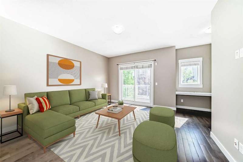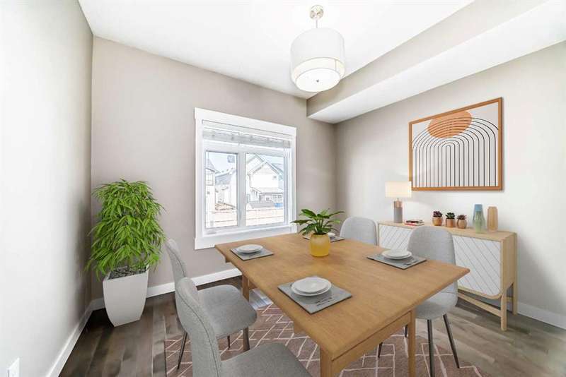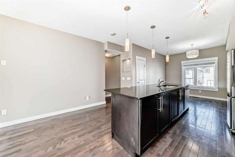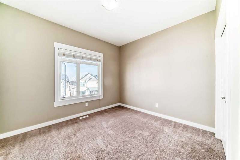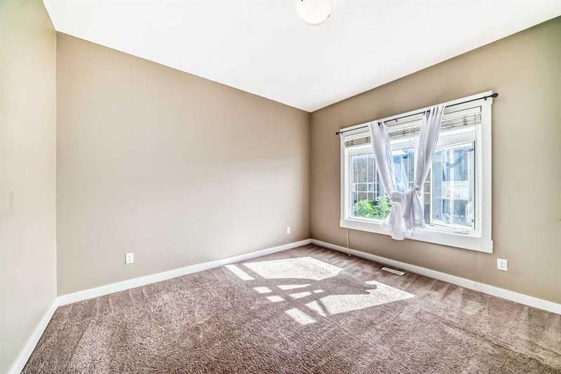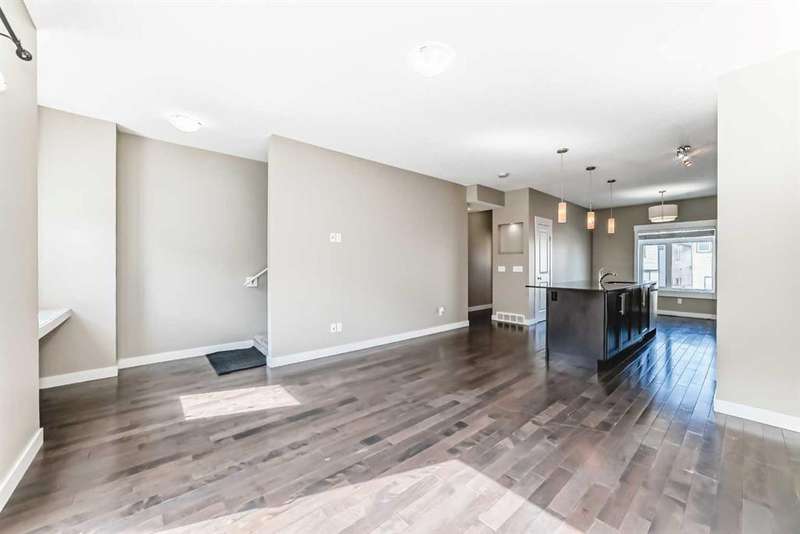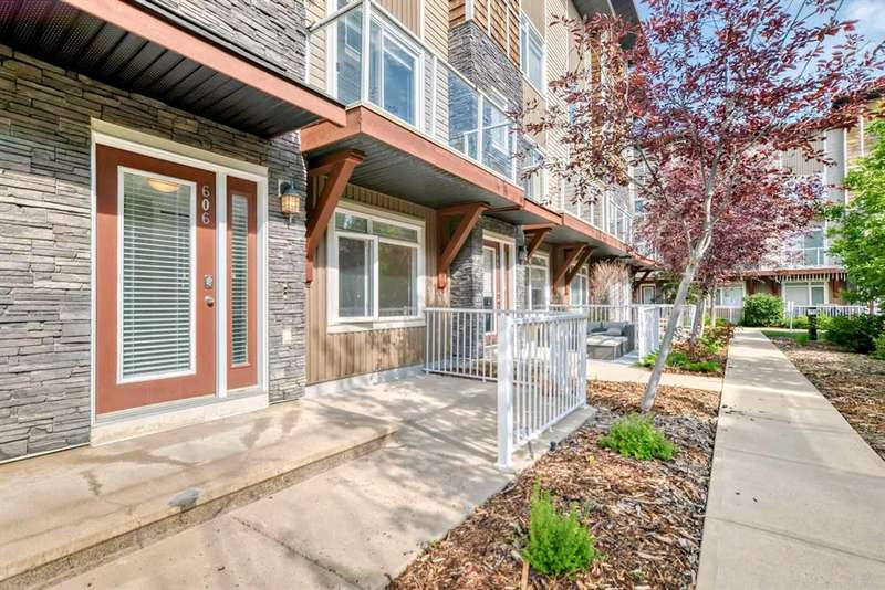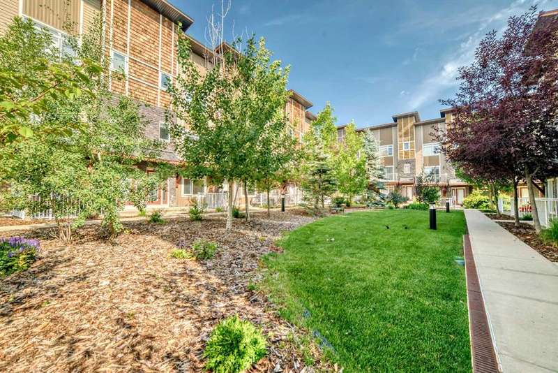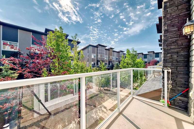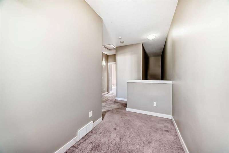 ** OPEN HOUSES, SAT. JULY 19, 1-3pm & SUN. JULY 20, 1-3PM** This beautiful 2-bedroom, 2.5-bathroom townhouse in Skyview Ranch offers both comfort and convenience. Highlights include a welcoming entry with a den and a large mudroom leading to the double attached garage. The main floor features an open-concept living area with distinct, functional spaces and great flow, including a well-designed kitchen with a large island, granite countertops, ceiling-height cupboards with lots of storage space, a pantry and a charming dining area. The large, bright living room is a wonderful, welcoming space with a balcony overlooking the courtyard, perfect for enjoying outdoor evenings. Upstairs, you'll find a versatile flex space ideal for an office, reading nook, or small family room. The second bedroom and main 4-piece bathroom are also well-sized, with the washer and dryer conveniently located nearby. This property is professionally landscaped, with plenty of visitor parking, and is situated in an established community close to schools, parks, major routes like Stoney Trail and Deerfoot Trail, and minutes to the airport. Recent updates include a newer washer and dryer, and the carpets have all been professionally cleaned. This home is move-in ready and an excellent choice for your next home!