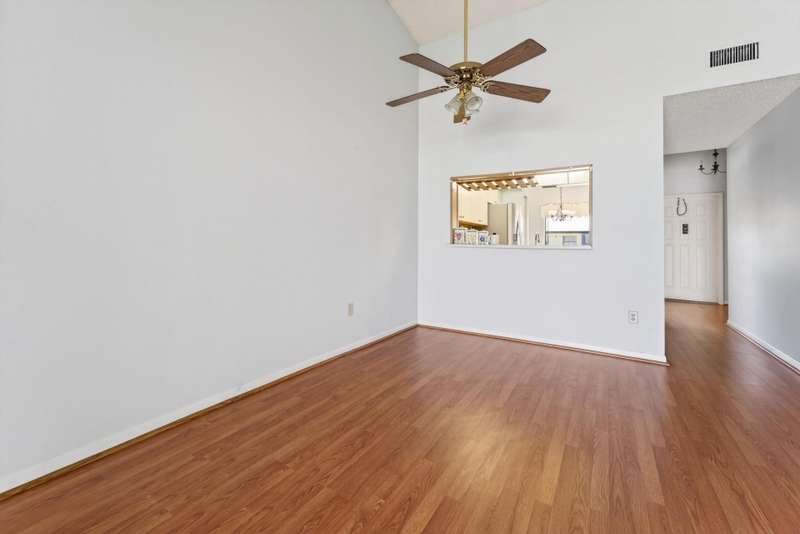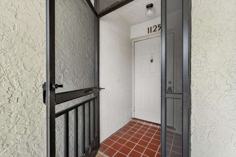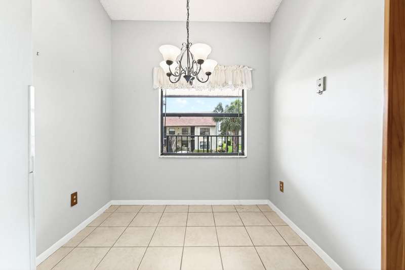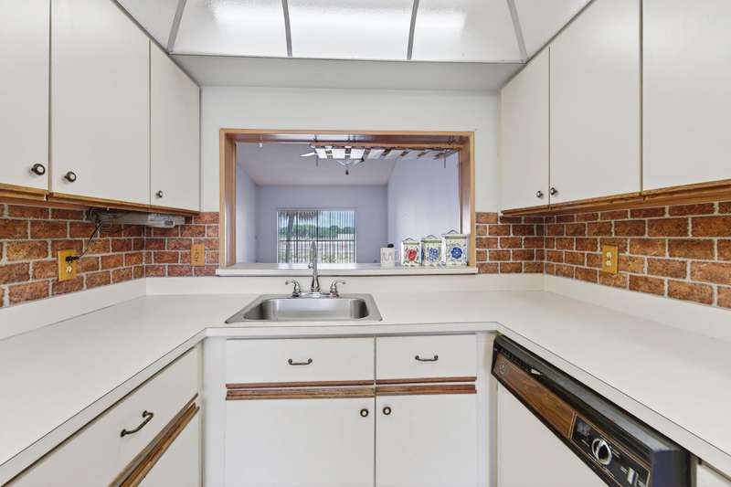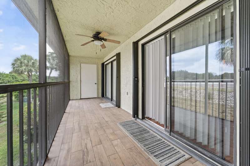 Spectacular 2/2 2nd floor condo with accordion shutters and large screened & tiled patio with storage closet. ***BRAND NEW AC Aug 2025*** Laminate flooring. Spacious kitchen with eat-in area, stainless refrigerator & microwave, awesome backsplash & pass-thru kitchen. Master features large walk-in closet, dual sinks & separate shower. Conveniently located, close to shopping, restaurants, turnpike, airport & beautiful beaches. Welcome to paradise! Move in ready!