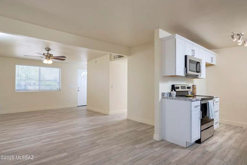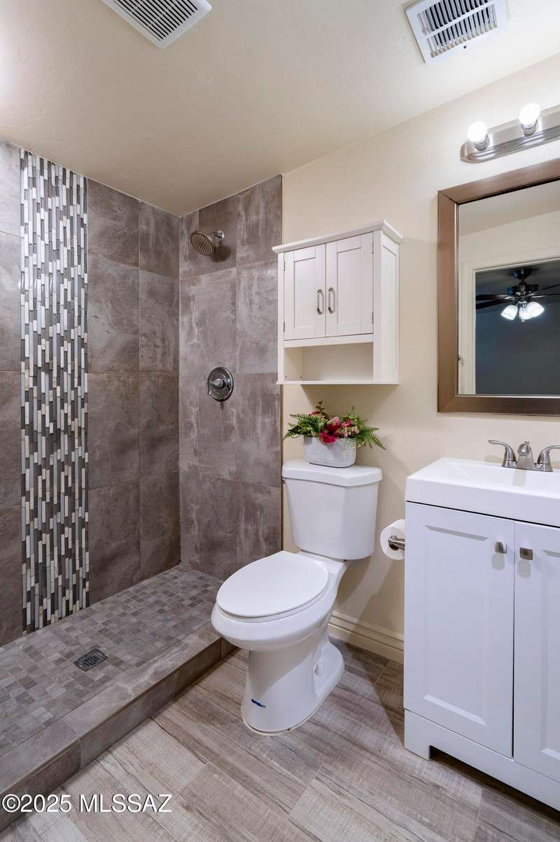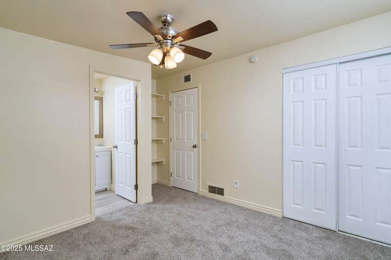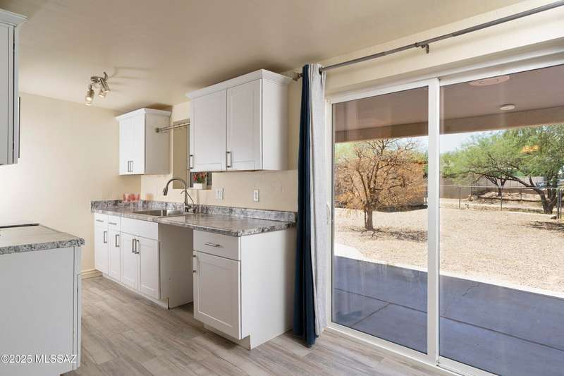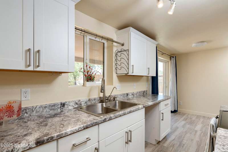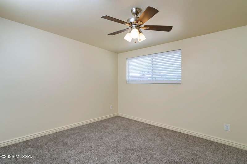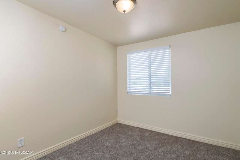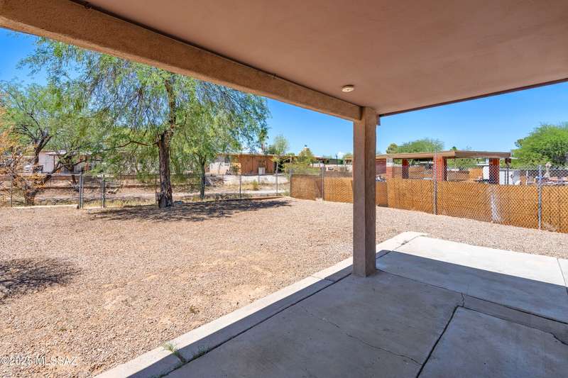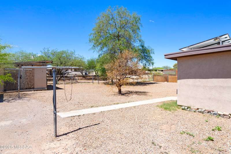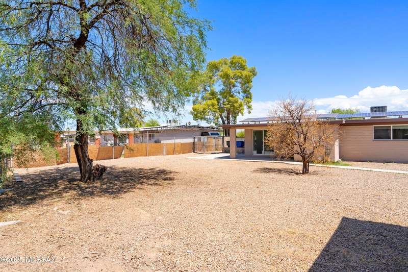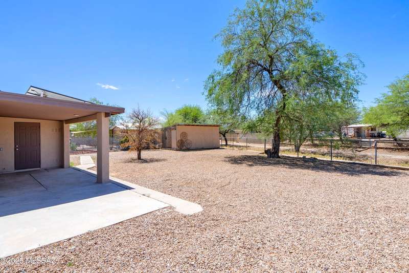 NEW ROOF 2025. Well-maintained 3-BD and 2-BA home with fresh interior paint and new carpet in the bedrooms. The cozy kitchen is plumbed for a reverse osmosis system and overlooks the backyard. This home features wood-like ceramic tile in the living areas, leased solar, and water softener system. The fenced-in backyard backs onto the alley for easy access from the street and is spacious with an over-sized storage shed. Nearby a neighborhood park and conveniently located near I-10, Kino Sports Complex, Tucson Marketplace, and Costco.