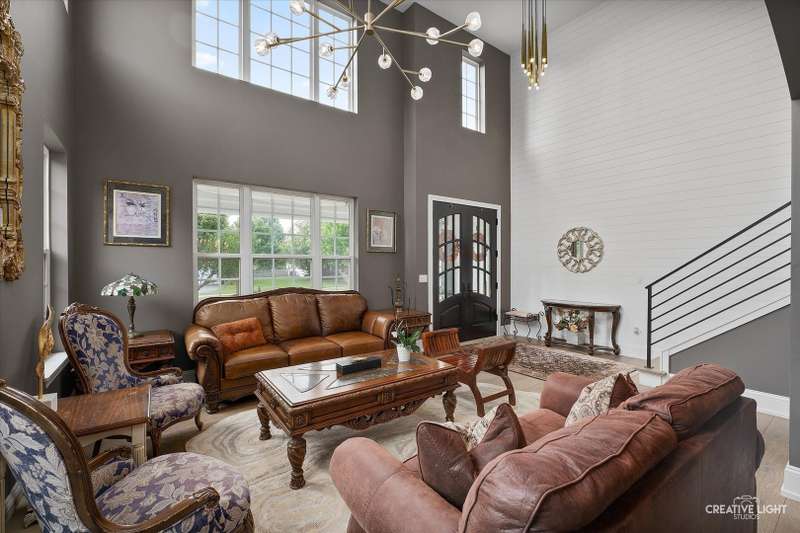 Welcome to refined living in the prestigious Grande Park community of Plainfield, IL. This stunning 6-bedroom, 4.5-bathroom residence offers over 4,800 square feet of beautifully finished living space-3,379 sq ft above grade and an additional 1,499 sq ft in the fully finished basement. Designed for both luxury and functionality, this home delivers high-end finishes, timeless elegance, and a layout perfect for everyday comfort and impressive entertaining. Step through custom front and sliding glass doors into a thoughtfully designed open floor plan. Rich, hand-scraped and waxed wide plank white oak hardwood flooring flows throughout the main level. The heart of the home is the gourmet kitchen, featuring quartz countertops, premium appliances, beautiful cabinetry, and a large center island that invites gatherings of all kinds. A sunlit casual dining area and a formal dining room offer flexible dining options, while the spacious family room-with its cozy fireplace-sets the stage for warm, welcoming nights. A dedicated private office provides the ideal space for remote work or quiet study. Upstairs, retreat to the luxurious primary suite, complete with an indulgent spa-like bathroom boasting a steam shower, a high-end soaking tub that maintains temperature for up to 90 minutes, and expansive closet space. The additional bedrooms are generously sized, with a Jack-and-Jill bathroom shared by bedrooms 3 and 4, and a hall bath shared by bedrooms 1 and 2-perfectly suited for family or guests. The fully finished basement expands your living potential with a spacious recreation area, full bar with refrigerator, home theater or gym space, a private bedroom, and full bathroom-ideal for entertaining or multi-generational living. Step outside and embrace the exceptional lifestyle that Grande Park has to offer. The backyard is a private oasis, showcasing a custom stone patio with an elegant water feature, surrounded by lush, professionally designed landscaping. A charming custom-built children's playhouse adds a delightful touch for families. As part of the sought-after Grande Park community, you'll also enjoy exclusive access to resort-style amenities, including a sparkling pool, clubhouse, and beautifully maintained parks and trails-offering endless opportunities for recreation, relaxation, and connection. With its upscale finishes, expansive layout, and prime location, this home is a true standout. The home was updated between 2018 and 2023. The roof and siding were replaced in 2022. Don't miss your chance to make it your own and experience the pinnacle of luxury living. Schedule your tour today!