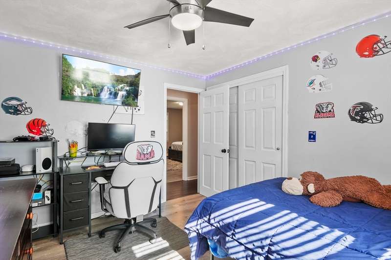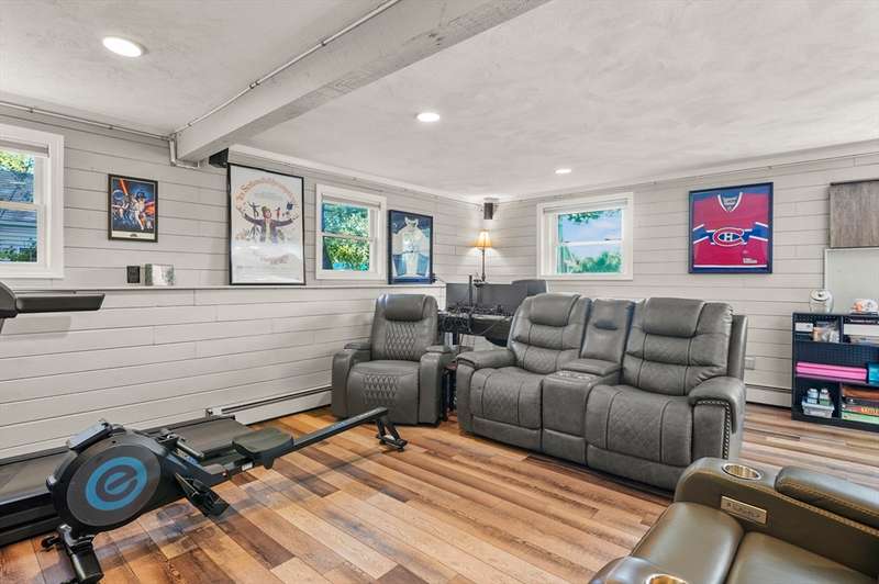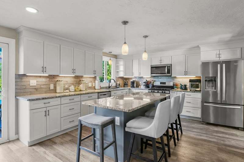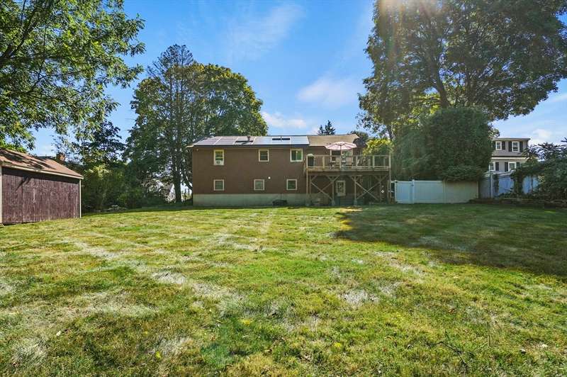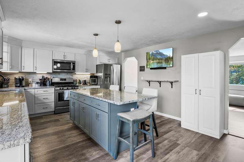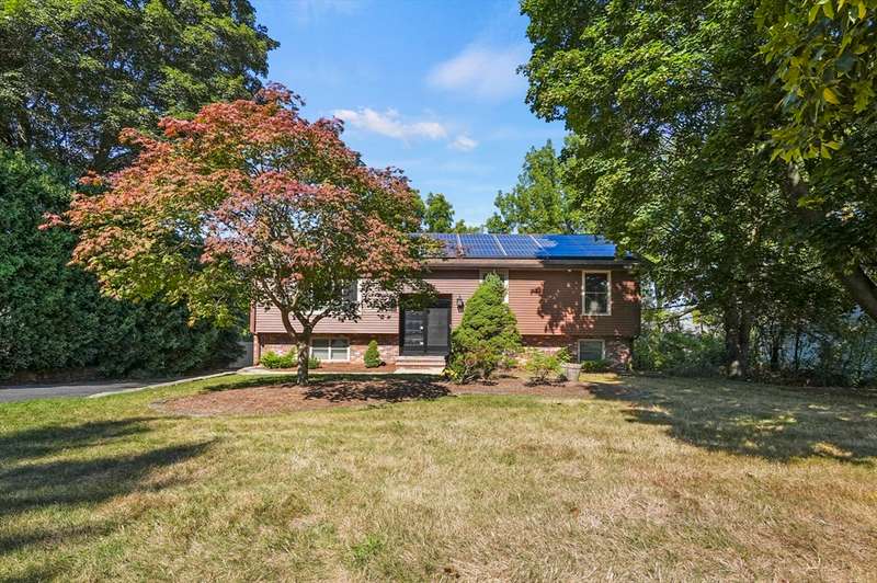 Welcome to this beautiful 4-bedroom split-level home filled with charm and modern updates. The main level offers a stylish kitchen with stainless steel appliances, granite countertops, island with breakfast bar, tile backsplash, and sliders to a spacious back deck. Enjoy meals in the dining area and relax in the living room with hardwood floors, a large picture window, and cozy wood fireplace. A full bath with dual vanity, tub, and shower plus three comfortable bedrooms complete this floor. The finished basement adds even more living space with a bedroom, bonus room, half bath with laundry hookups, and plenty of storage. Outside, you’ll love the fenced backyard with a deck, patio, and storage shed. Solar panels help keep energy costs down, while double entry doors, a paved driveway for 6 cars, and a one-car garage add curb appeal and convenience.