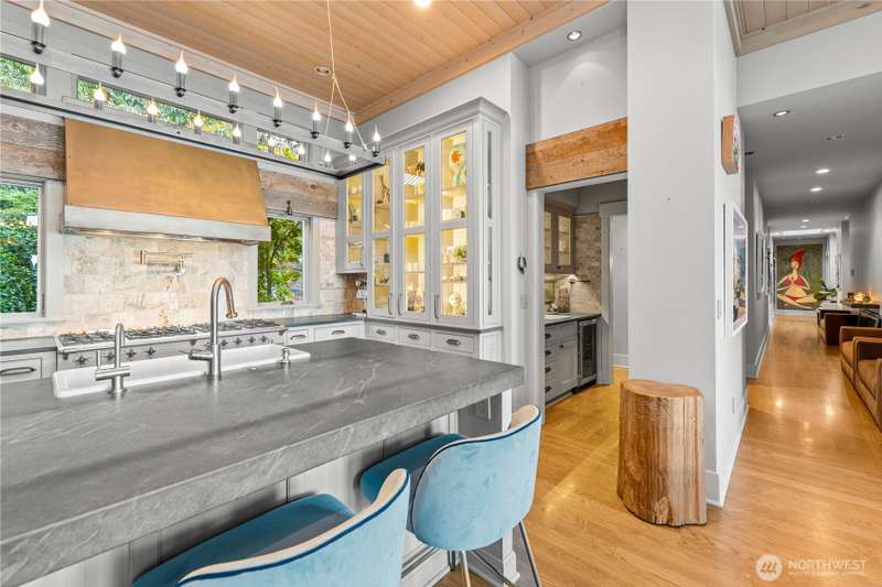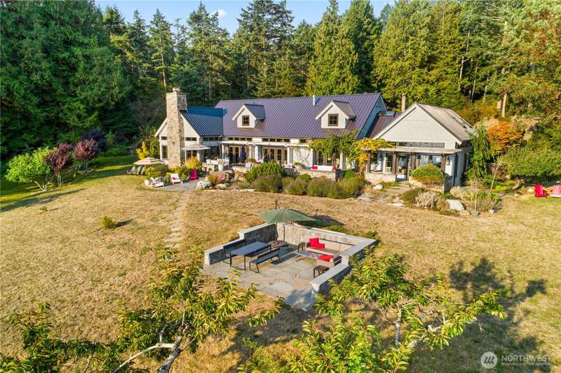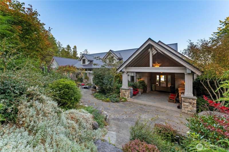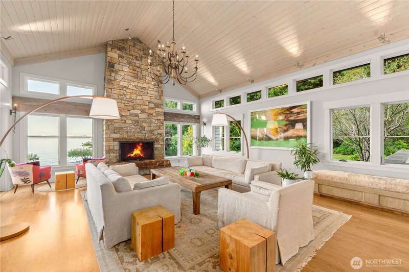 Experience unparalleled waterfront living in this one level masterpiece, sited on a world class no-bank sand & pebble beach. Nearly every room frames sweeping views of San Juan Channel, Orcas I. & the Cascades. Masterfully designed house features airy 20’ ceilings, a striking stone fireplace & abundant natural light. Chef’s kitchen w/ honed stone counters, 55” LaCanche range/oven, SubZero fridge & butler’s pantry. Lovely den w/ fireplace, luxurious primary suite & 2 additional ensuite bedrooms. 330’ of private beach perfection in a tranquil cove with permitted mooring buoy & boat ramp—perfect for kayaking & paddle boarding. Converted boathouse/studio w/ deck, 2-car garage w/ guest suite, hot tub & gated entry complete this rare offering.