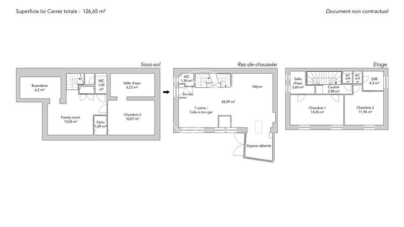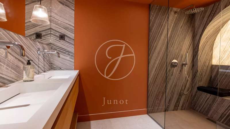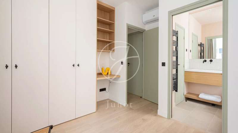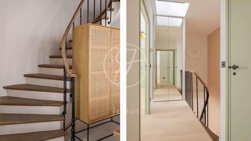 In the heart of the 5th arrondissement, ideally located between the Panthéon and Place Monge, a stone's throw from Rue Mouffetard, discover behind large carriage entrance gates a delightful 126.65sqm loi Carrez house nestled in a former workshop. Completely renovated in 2025, it combines authentic charm with contemporary comfort. The house is accessed via a luminous workshop-type veranda that opens onto a spacious 46sqm double living room with open kitchen, a pleasant patio and separate toilet. Upstairs, the two large en suite bedrooms each have their own shower room, toilet and storage space. On the garden level, a beautiful office or family room accompanies a spacious master suite with patio, bathroom and toilet. Air-conditioned, perfectly appointed and bathed in light, this uniquely charming home offers an exceptional living environment in the heart of a neighborhood steeped in history. An attractive vaulted cellar completes this rare property.