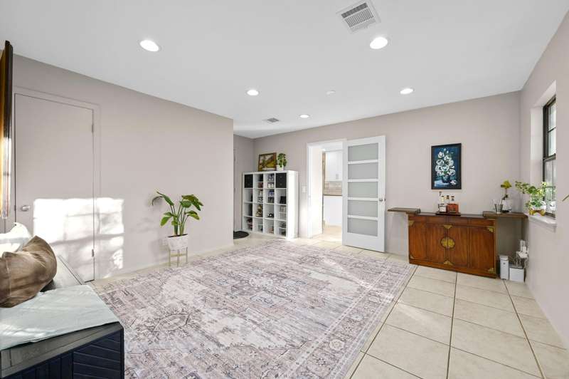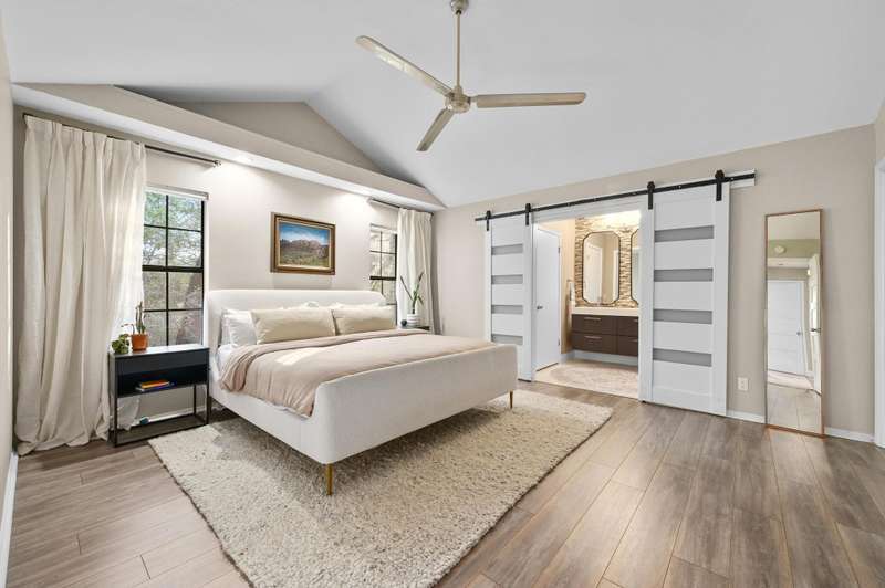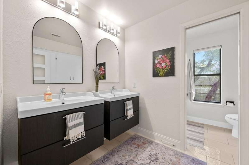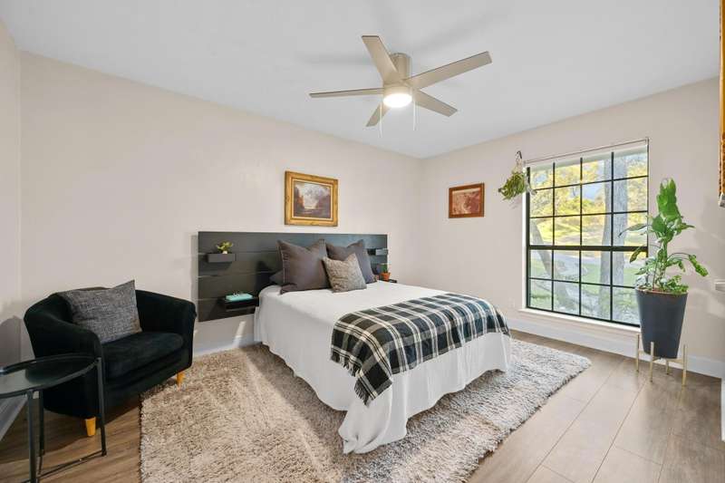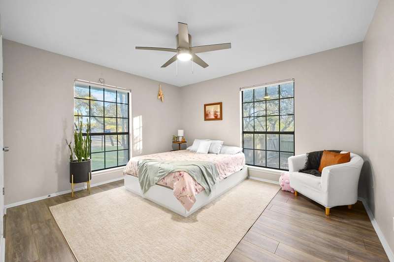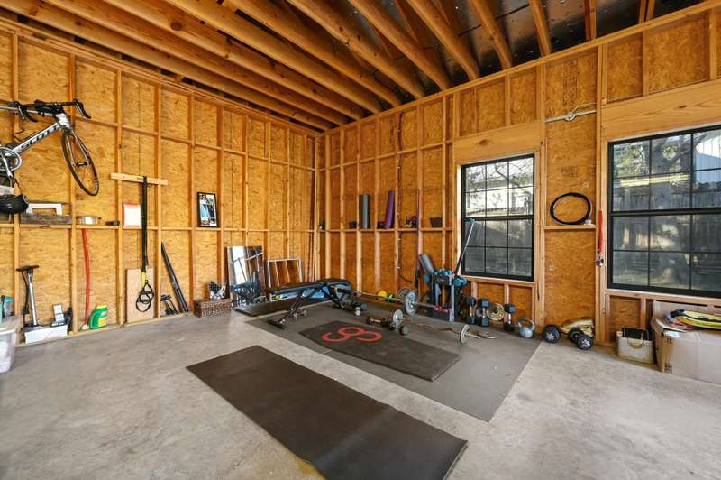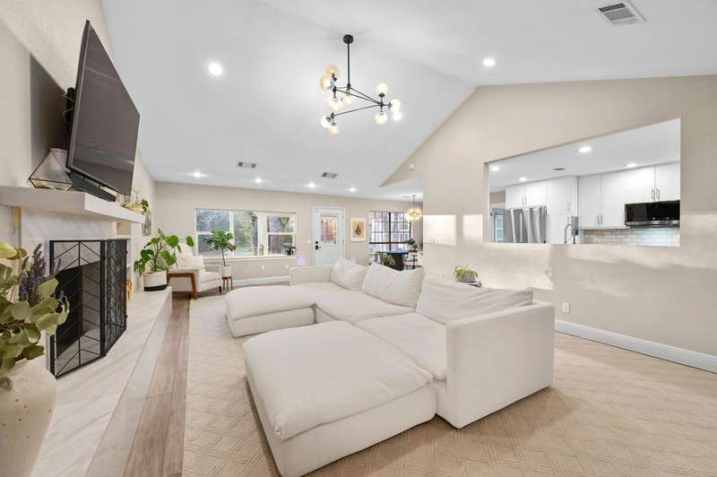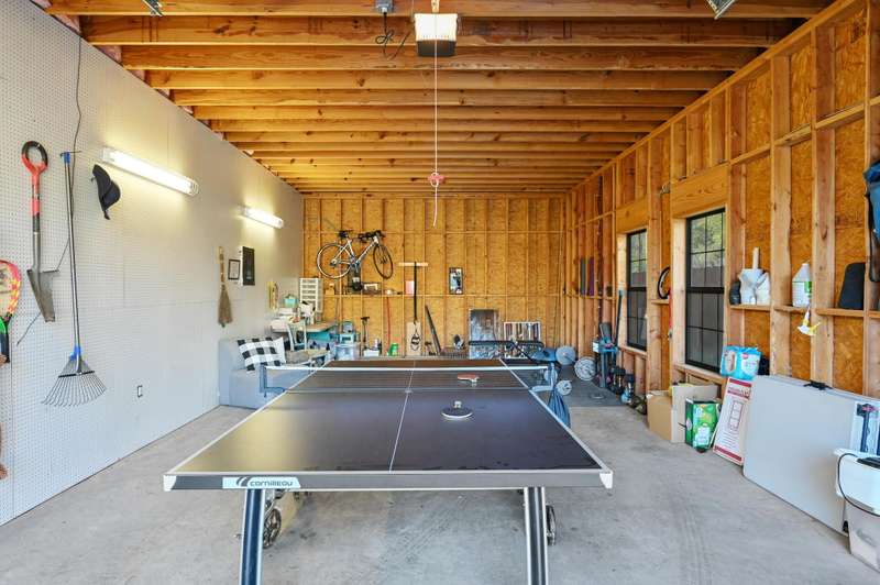 Thoughtfully updated home offers a rare combination of tranquility, space, and modern convenience. Step through the front door into a bright, airy living space with a gas-start fireplace & built-in shelving which offers a cozy focal point for quiet evenings at home. The flowing floor plan connects the living area to a modern kitchen, creating an ideal space for both entertaining guests and enjoying family meals. Updated w/stainless steel LG smart appliances, this kitchen combines functionality w/contemporary style. Main-level primary suite features a luxurious bathroom with double vanity, separate his-and-her closets, & a walk-in shower. The updated secondary bathroom continues the theme of refined comfort w/its double vanity, resurfaced cast iron bathtub, & modern bidet. The main level also features a formal dining room that opens to the living area, a separate study, convenient bonus/mud room and two secondary bedrooms. A multipurpose room with soaring ceilings and an indoor basketball goal provides endless possibilities for recreation and creative projects. Upstairs, discover a private bedroom retreat with its own ensuite bathroom & a newly installed Friedrich Mini Split for personalized climate control. The property also offers a second large garage, ideal for an RV or the ultimate workshop. Whether you're passionate about woodworking, fitness, or need a dedicated space for hobbies, this versatile area adapts to your needs. Additional parking slab with RV hookup provides even more convenience. Multiple peaceful outdoor spaces invite relaxation & connection with nature. Unwind on the charming covered front porch with its inviting swing, or gather on the covered back patio for quiet evenings outdoors. The fully fenced backyard offers ample space for gardening enthusiasts, with designated area currently housing chickens. This rare combination of tranquil setting, versatile spaces, & modern updates creates a truly special property. See attached for list of updates.