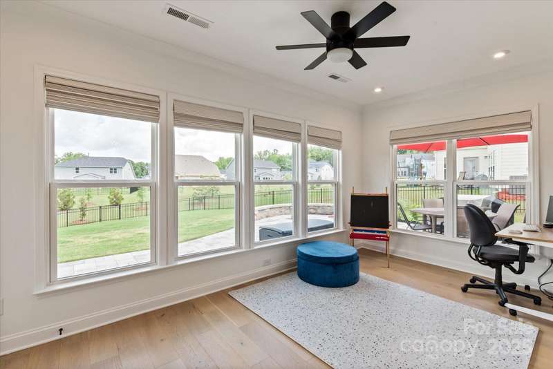 Stunning home in the gated neighborhood of Bretagne, 13 min. from The Bowl at Ballantyne, 15 min. from new Indian Land Costco & Lowes Foods shopping center & 30 min. from Uptown Charlotte. Beautifully designed & filled w/natural light, featuring a main floor office w/french doors, bright sunroom overlooking backyard, built-in drop zone area off the garage & a private bedroom w/ full bath, perfect for guests. Kitchen features walk-in pantry, large island, gas cooking & stainless steel appliances. Open-concept kitchen & family room are ideal for entertaining, highlighted by custom built-in cabinetry surrounding the fireplace. Upper-level includes loft w/large windows, a spacious primary suite w/luxurious soaking tub & his-and-hers walk-in closets & 3 add'l bedrooms, one w/private bathroom. Rear yard backs to common area space. Paver patio spans the full width of the rear of the homeperfect for relaxing or hosting gatherings. Neighborhood includes outdoor pool, cabana & play area.