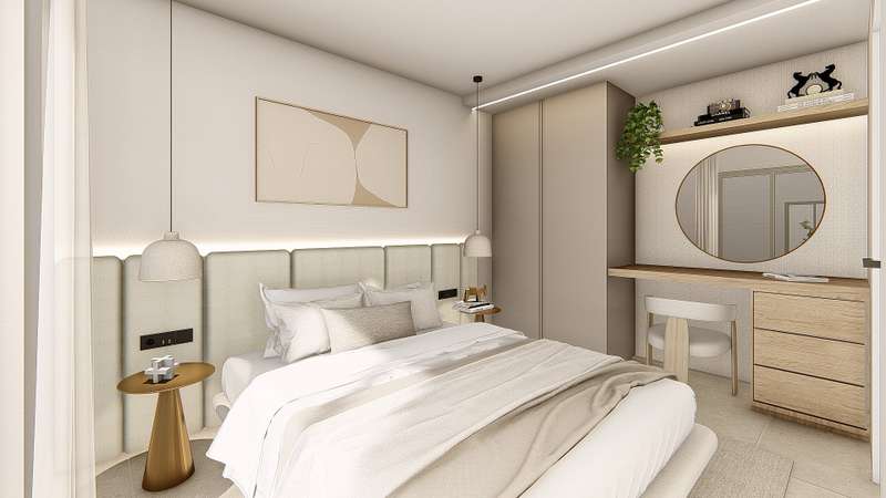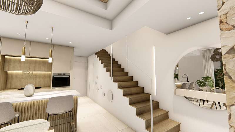 These contemporary semi-detached villas are thoughtfully designed across two floors, featuring 3 bedrooms with built-in wardrobes, 2 bathrooms, a guest toilet, and an open-concept kitchen that flows into the lounge area. Each property also boasts a solarium with a summer kitchen and a garden complete with a private pool.