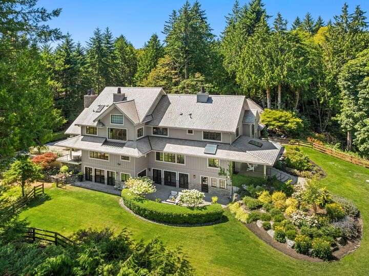 Discover an exceptional Derby Downs residence that blends timeless elegance with contemporary flair. Located in a quiet equestrian enclave of luxury homes, this gracious manor is sited on 2 private, sun-drenched acres of spectacular grounds. Serene outdoor living is elevated with expansive stone terraces and a cozy patio fireplace. A dramatic renovation recently transformed the interior with a sophisticated new kitchen, scullery, family room, state-of-the-art media room and exquisite designer finishes throughout. A circular drive & 3-car garage round out this gracious estate. It’s an idyllic island retreat close to Grand Forest trails, top-rated schools, charming shops, & the Seattle ferry. A home that is as extraordinary as it is timeless.