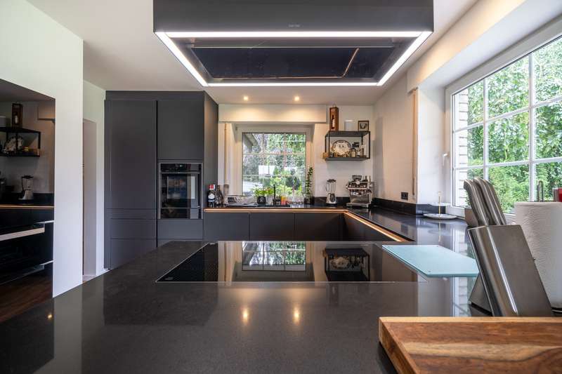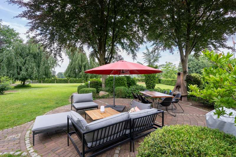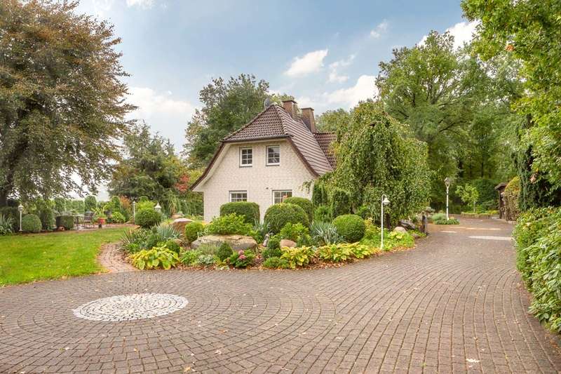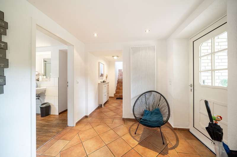 This property is presented to you by: Philipp Schremmer & Laura Stolke Phone: 05241 - 211 99 90 Family idyll for generations in Schloß Holte-Stukenbrock Anyone who loves spaciousness, charm and a high degree of individuality will be delighted with this property. This fantastically situated property impresses with its park-like grounds, offering plenty of space and greenery for families and nature lovers looking for peace and freedom in the countryside. Terraces and lovingly arranged garden terraces line the living space both in front of and behind the brightly clinkered house. Pure relaxation! The long driveway leads you to the lovingly renovated main house and the outbuilding connected by the conservatory. The approx. 147 m² in the main house are divided on the first floor between the spacious living/dining area with adjoining L-shaped kitchen (Häcker high-end kitchen) and the fantastic conservatory, which connects the main house and the annexe internally. This floor is rounded off with the guest WC. The top floor has a master bedroom, children's room, a storage room and the master bathroom. The outbuilding can be accessed both via the conservatory and via a separate entrance. On the first floor there is a laundry room with shower and washbasin, a WC, the sauna and 2 separate rooms. On the top floor you will find comfortable living space. It's entirely up to you whether you want to accommodate one of your older children, your children's grandparents or a home office. You may also have friends over - a guest wing would also be a nice use. The garden is pure joy - additional cozy spaces can be created everywhere. Barbecue with your outdoor fireplace for family and friends, enjoy your garden, which extends to approx. 5,657 m² and still offers many design options. Three carport parking spaces and at least 10 free parking spaces complete the offer. If you like this property as much as we do and can imagine it becoming your new home, we look forward to meeting you. Please understand that only written inquiries with a full address and telephone number can be processed. A viewing can only take place with a financing confirmation. Should you require further assistance in this regard, we will be happy to put you in touch with our colleagues at VON POLL FINANCE.