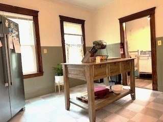 Life's Better Over the Bridge! Savin Hill is Special! Located on the first floor of a Lovely 1890's 2 family home, this apartment features a classic large entry foyer with French doors to formal Living room & Dining room, with lots of original detail. There's a Large Eat in kitchen with new fridge & a gas stove. The space is wonderful - offering 2 Large bedrooms & an office, full bath, & fresh paint!. Heating is by Oil & distributed by decorative radiators. Enjoy the Amazing city views from this first floor apartment's rear deck & enjoy the garden. Just 2 Blocks to the Savin Hill T station, lots of restaurants & shops. Check out The Daily for groceries, and much more! And enjoy the Parks - Savin Hill Park & McConnell Park where you will find 2 of Dorchester Beaches - Savin Hill Beach & Malibu Beach. Pets welcome with landlord approval. Laundry in Basement, Parking is on street parking Permit. Good credit is a Must.