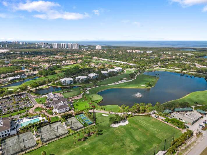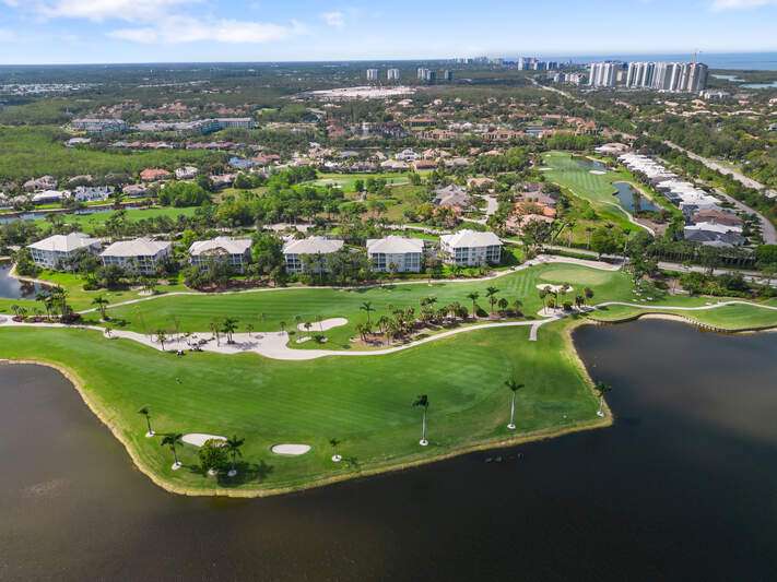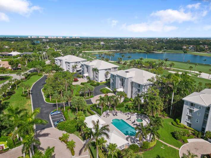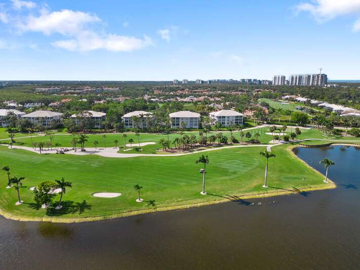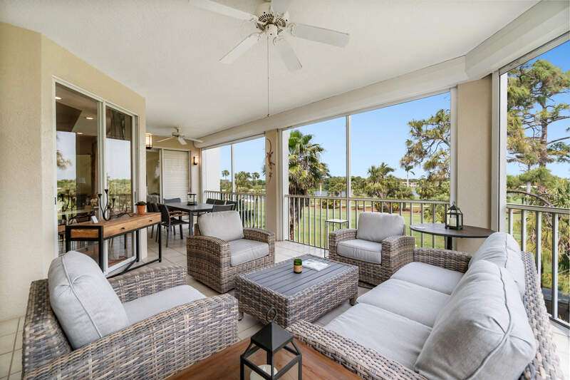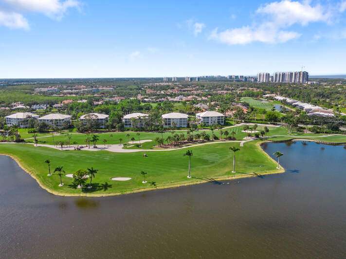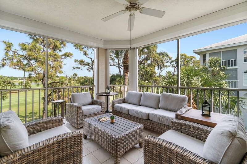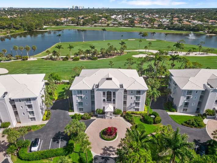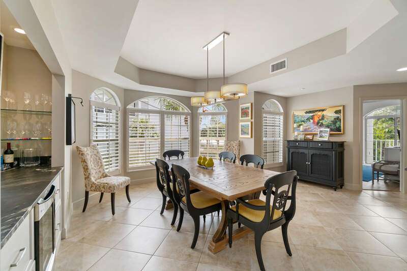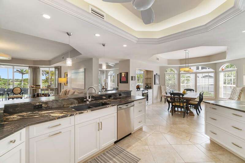 Beautifully updated condo with spectacular golf course & lake views in North Naples' coveted "Audubon Golf & Country Club!" All the prime amenities offered in Audubon are only steps away, including an 18-hole championship golf course, tennis, pickleball, Bayside boardwalk, brand-new spectacular poolside club & cafe. Relax and unwind on your expansive screened-in lanai with breathtaking panoramic golf course views. This stunning residence features an open floor plan, three spacious bedrooms, a versatile den, and 3.5 bathrooms. A private two-car garage, complete with golf cart storage, adds to the convenience. Inside, you'll find light, wide plank, wood flooring, tray ceilings, and a chef's kitchen with crisp white cabinetry, exquisite granite countertops, and a breakfast bar for casual dining. Adjacent to the kitchen, a charming eat-in area offers a beverage bar with a built-in wine cooler, perfect for entertaining. The expansive primary suite boasts stunning golf course views, private access to the lanai, and a spa-like en-suite bathroom with dual vanities, a large frameless glass shower, and a separate soaking tub. Audubon Golf & Country Club is ideally located just five minutes from the vibrant Mercato shopping center and the pristine beaches of Southwest Florida, all within a gated, and guarded community.
