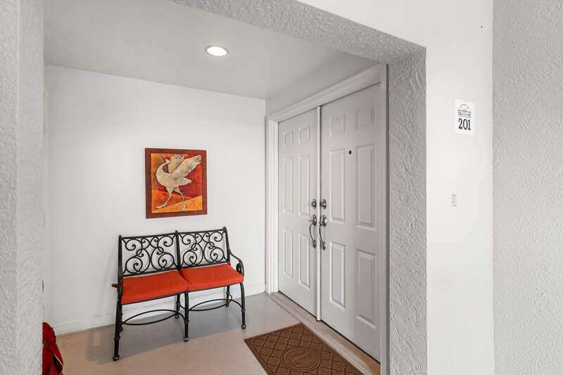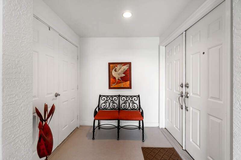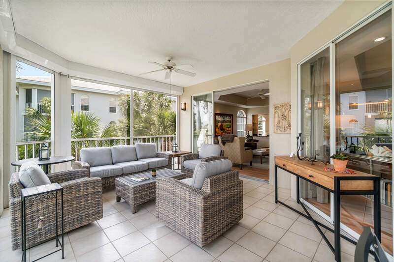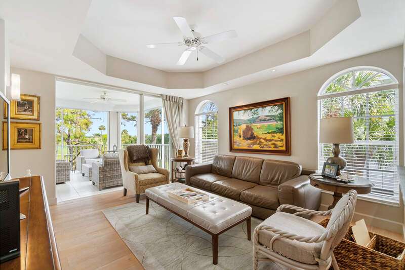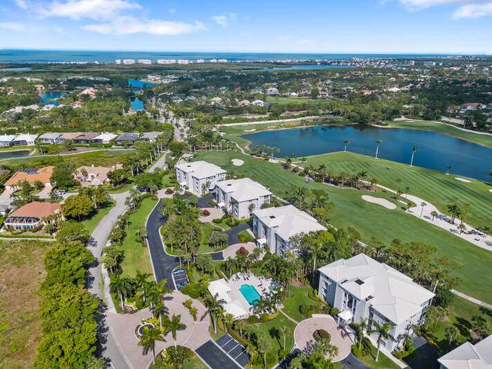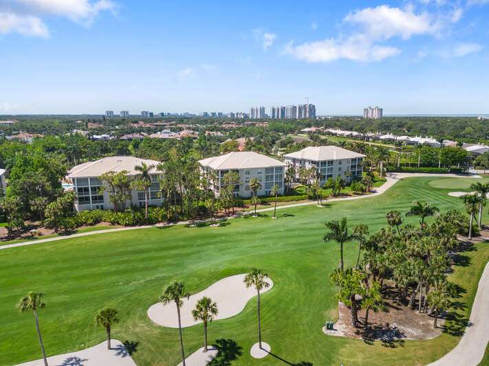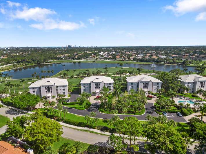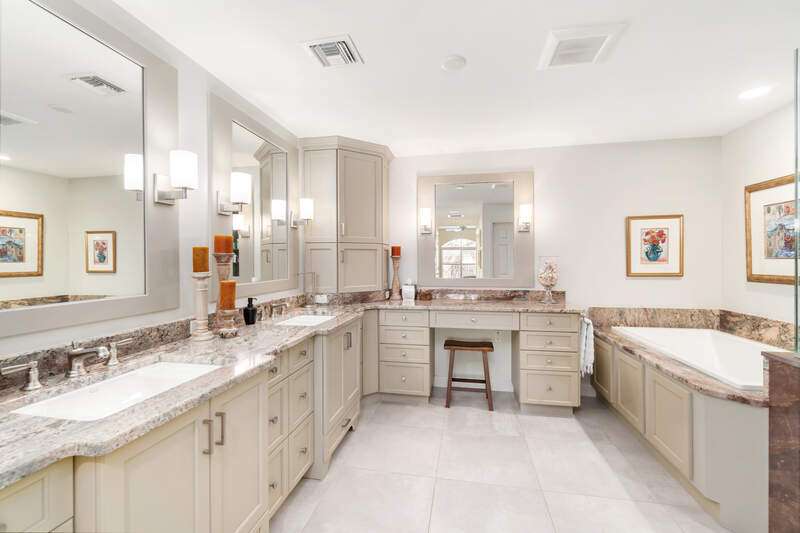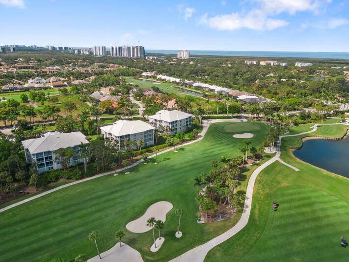 Beautifully updated condo with spectacular golf course & lake views in North Naples' coveted "Audubon Golf & Country Club!" All the prime amenities offered in Audubon are only steps away, including an 18-hole championship golf course, tennis, pickleball, Bayside boardwalk, brand-new spectacular poolside club & cafe. Relax and unwind on your expansive screened-in lanai with breathtaking panoramic golf course views. This stunning residence features an open floor plan, three spacious bedrooms, a versatile den, and 3.5 bathrooms. A private two-car garage, complete with golf cart storage, adds to the convenience. Inside, you'll find light, wide plank, wood flooring, tray ceilings, and a chef's kitchen with crisp white cabinetry, exquisite granite countertops, and a breakfast bar for casual dining. Adjacent to the kitchen, a charming eat-in area offers a beverage bar with a built-in wine cooler, perfect for entertaining. The expansive primary suite boasts stunning golf course views, private access to the lanai, and a spa-like en-suite bathroom with dual vanities, a large frameless glass shower, and a separate soaking tub. Audubon Golf & Country Club is ideally located just five minutes from the vibrant Mercato shopping center and the pristine beaches of Southwest Florida, all within a gated, and guarded community.