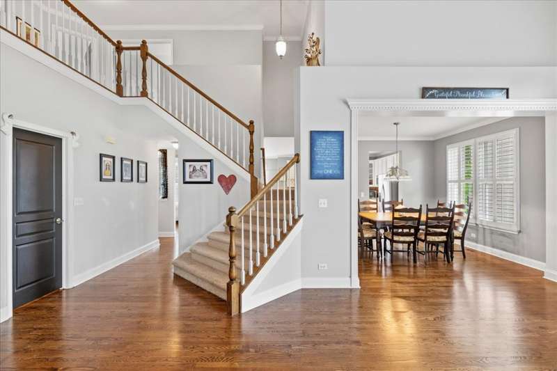 Sterling Ridge Showstopper with Fireworks Views! Enjoy your own private seat to Cary's July 4th fireworks from the backyard of this stunning 5-bedroom, 4-bath home with over 3,200 sq. ft. of living space. Featuring a 3-car garage and a beautifully finished French basement with a second fireplace, full bath, and high-end tile flooring, this home blends elegance with everyday comfort. Step into the dramatic two-story foyer and open floor plan with gleaming hardwood floors throughout the main level. The chef's kitchen boasts 42 white cabinets, solid-surface countertops, and a double wall oven-perfect for entertaining. The seller has spared no expense on upgrades, including custom woodwork and crown molding, $13K plantation shutters, upgraded doors, a cathedral-ceiling primary suite, granite counters, enhanced fireplace finishes, additional brick detail on the front exterior, and more. The main floor offers both an office with double French doors and a full bath, making it ideal for an in-law arrangement. Upstairs, the primary suite features vaulted ceilings, a spa-like bath, and a generous walk-in closet. Enjoy a fenced backyard that backs to scenic trails, a pond, and open space. From here, it's a short walk to schools, parks, the aquatic center, and downtown Cary's Metra station. Three schools are within 1.5 miles along safe trails, so kids never need to cross a major street. With newer siding, dual HVACs, and numerous updates, this home is truly move-in ready. Don't wait-homes like this don't last in Sterling Ridge! ** NEW ROOF and gutters coming October 2025.** Seller offers a 1-year HOME WARRANTY.**