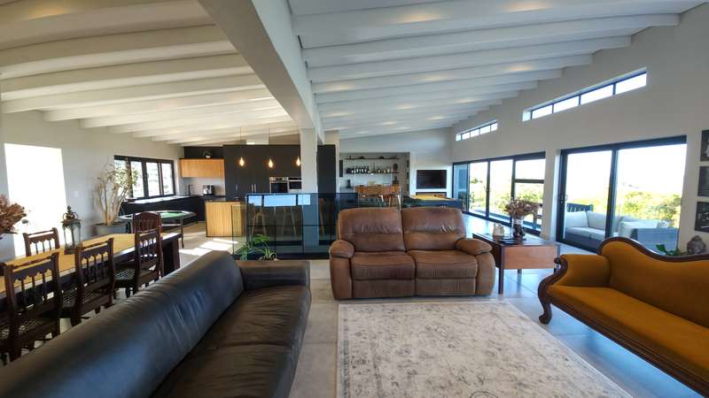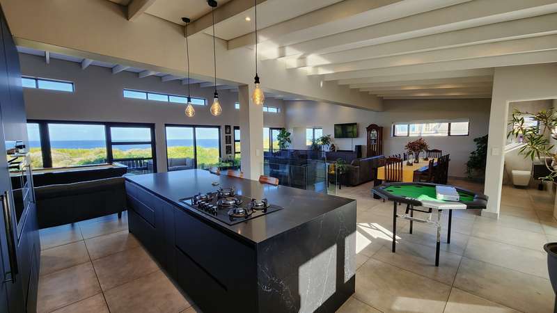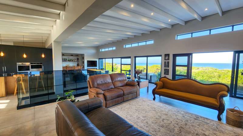 Modern 4 Bedroom Home in Fishermans Village – DANA BAY Brand New Beachfront Masterpiece in Exclusive Fisherman’s Village - Dana Bay Experience the ultimate in coastal living with this stunning, newly built 4-bedroom, 4-bathroom home in the highly exclusive Fisherman’s Village Eco Estate – a rare gem with only 41 full title stands, offering unmatched privacy, tranquility, and luxury. Perfectly positioned right on the beach, this home boasts breathtaking 180° ocean views. Wake up to the soothing sounds of waves breaking just steps from your doorstep, and immerse yourself in the beauty of unspoiled nature and indigenous fynbos landscapes. Designed with a sleek, very modern architectural style, the home is filled with natural light through expansive windows and sliding doors that bring the outside in—maximizing the panoramic sea and nature views from nearly every room. The seamless flow between spacious open-plan living areas creates a calm and welcoming atmosphere, ideal for both relaxation and entertaining. All four bedrooms are generous in size and feature en-suite bathrooms, offering comfort and privacy for family and guests alike. High-end finishes and clean lines throughout reflect the premium quality of this exceptional home. Set within a secure, eco-conscious estate, you’ll enjoy the peacefulness of farm-style living with all the luxury and elegance of modern design. Whether you're looking for a forever home, a holiday retreat, or an investment, this coastal haven is a once-in-a-lifetime opportunity.