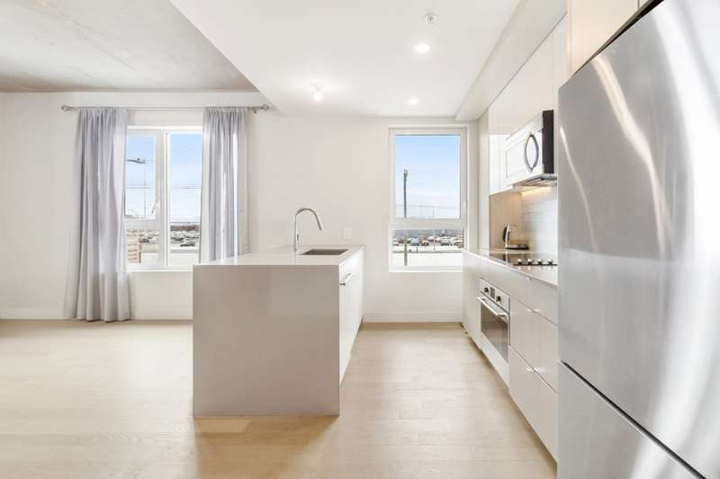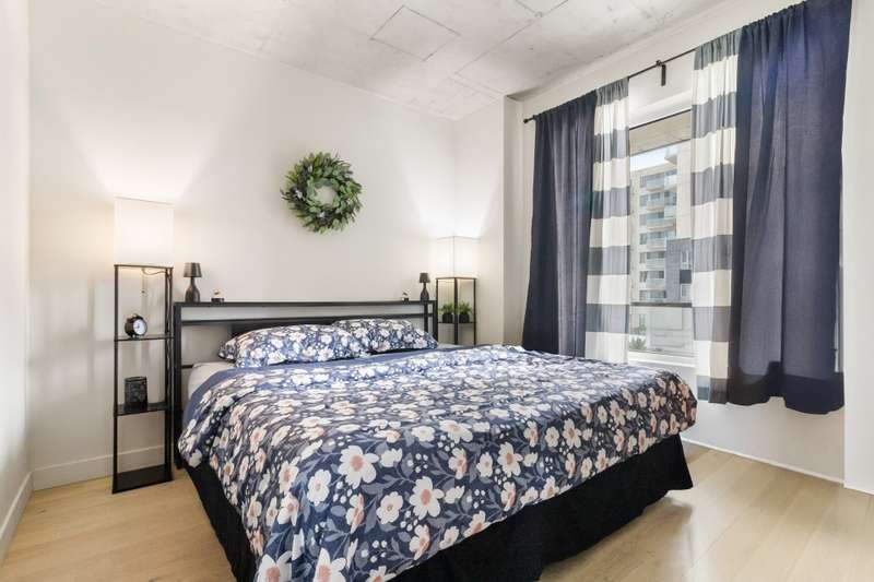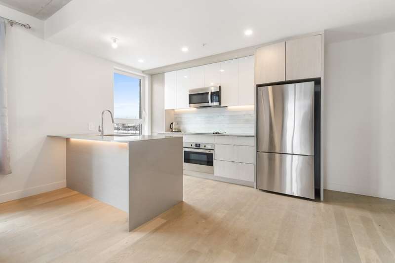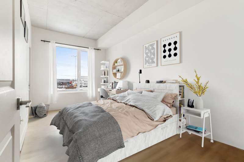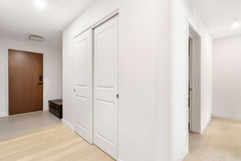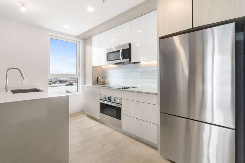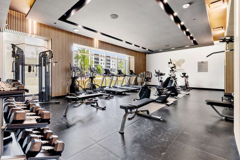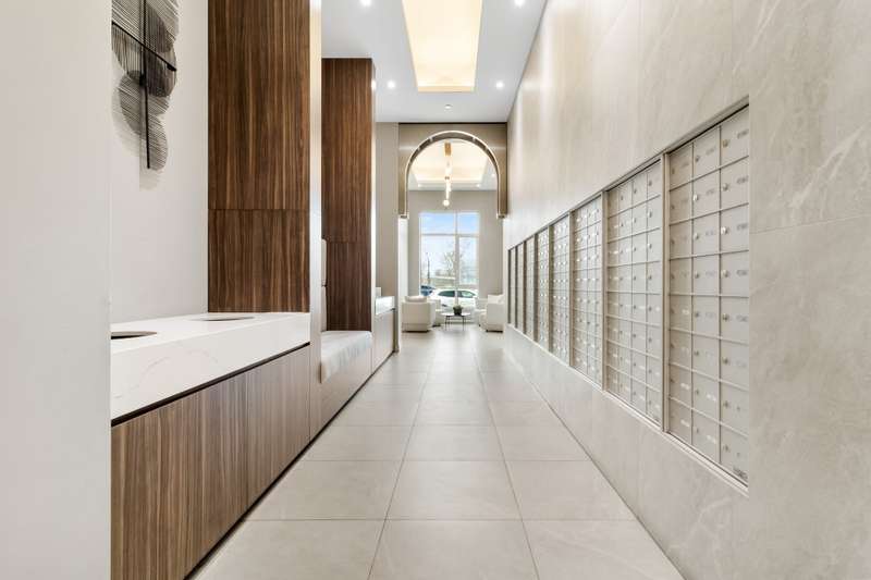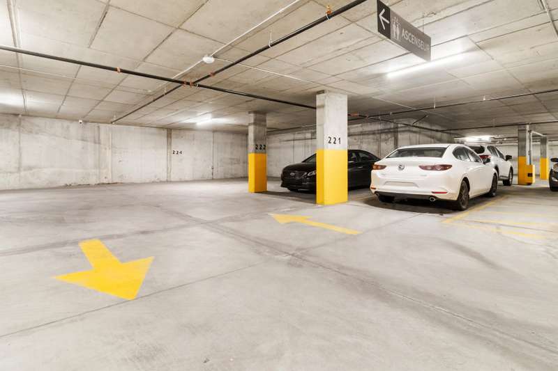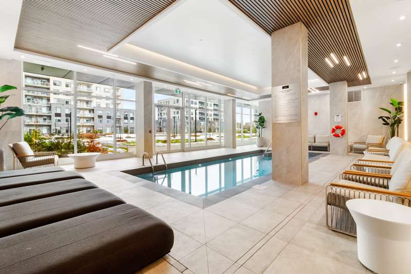 Bright corner unit offering 2 bedrooms and 2 full bathrooms, in a prime position with no unit below. Open-concept layout with large windows, concrete ceilings and modern finishes. Kitchen with quartz countertops and built-in appliances. Balcony overlooking the courtyard. Indoor parking space with extra clearance plus storage locker. Building offers an indoor pool, gym, lounge areas, BBQ terrace, EV charging and bike storage. Ideal location near services, parks, transit and major highways.