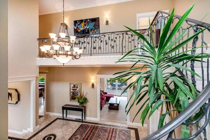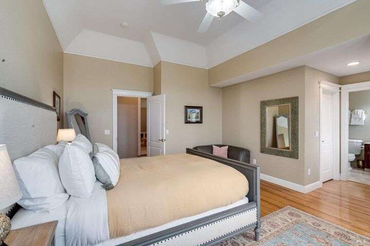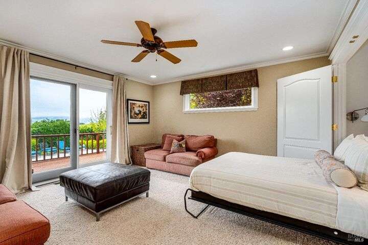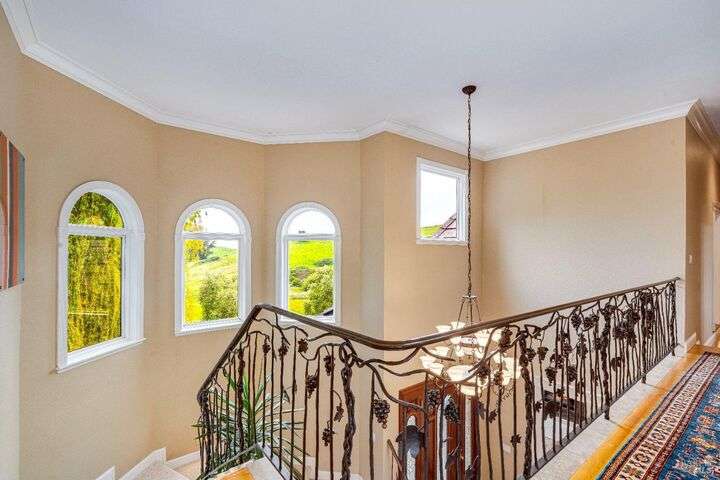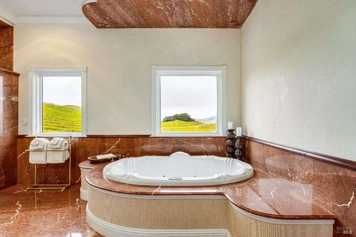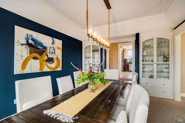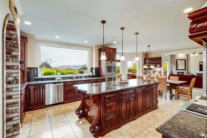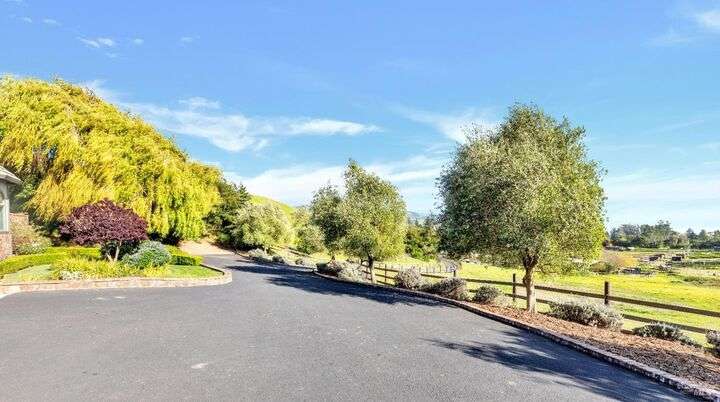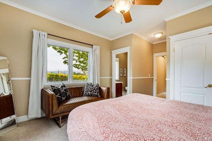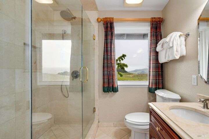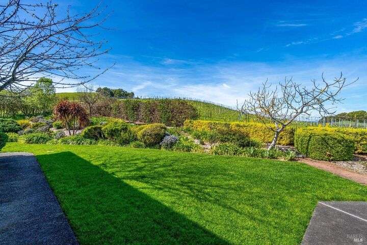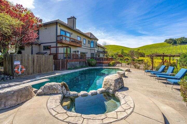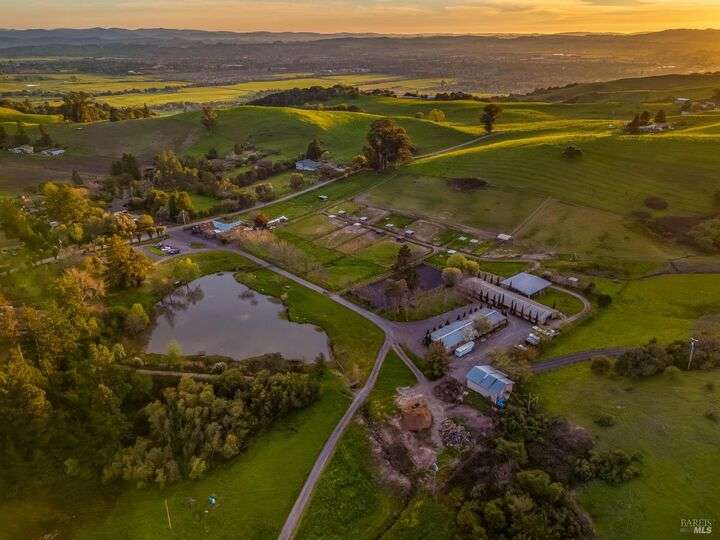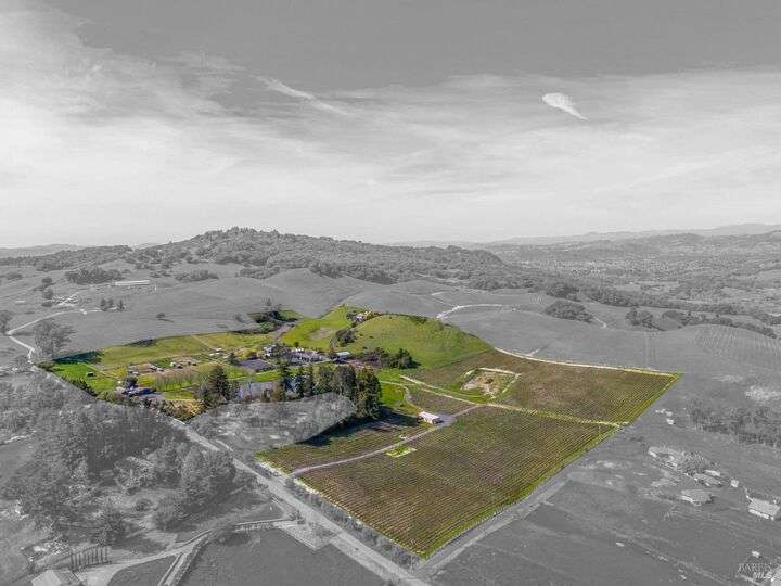 Perched on a panoramic vantage point within Bennett Valley, this impressive 5,414 sq ft estate offers seven bedrooms and five and a half baths on 44 acres of thriving vineyards, professional equine facilities, and indulgent views. Impressive with sunny windows, custom trimmings, tray ceilings, and multiple fireplaces, your Tudor-style estate charms with a centerpiece stone-lined wine cellar, shade-dappled landscaping, and outdoor oasis with heated pool. Complete with expansive gourmet kitchen, a pair of thirty-stall equine barns, twelve acres of sunkissed Syrah+ Roussanne vines, solar paneling, two residential income units, and workshop. This versatile property captivates with privacy, adventure, and luxury just minutes from idyllic Santa Rosa and Kenwood offering access to world-renowned wineries, artisanal dining, and scenic parks. Hike, explore, bike, or ride horseback nearby, while the Golden Gate bridge invites just 45 minutes close.