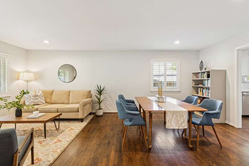 A rare and wonderful opportunity in Lake Highlands Elementary! Welcome to 10021 Lanshirewhere gorgeous mature trees frame the front yard and set the tone for the charm that continues inside. This cheerful, light-filled home offers three generous living spaces and an open, flowing layout perfect for gatherings, everyday living, and everything in between.With three bedrooms, two bathrooms, and beautiful hardwood floors throughout, the home blends warmth, style, and comfort seamlessly. The updated kitchen shines with modern touches, the HVAC was replaced in 2024, and the refreshed bathrooms keep everything feeling crisp and current. A stunning wall of windows overlooks the backyard and leads to a spacious deckideal for morning coffee, evening unwinding, or hosting friends under the trees.The versatile floor plan provides room for everyone, whether youre relaxing, entertaining, or spreading out to work or play. Complete with a two-car garage and a coveted spot in Lake Ridge Estates, this one truly checks all the boxes!