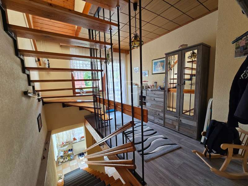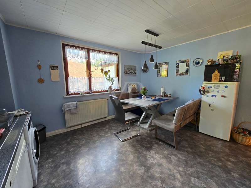 Spacious, well-kept country house with approx. 200 m² of living space, usable outbuildings and beautiful garden landscape in Nordhausen - Hochstedt This property offers several opportunities in the Nordhausen catchment area. The location and the house together with the extended outbuildings with garage, workshop, "party barn" and stables/animal husbandry with adjoining beautiful larger garden landscape combine an idyllic country and city life. Through or with the immediate proximity to the district town of Nordhausen, which also has the status of a regional center. It offers space in the spacious 2 to 3-storey house with approx. 200 m² of living space as well as in the outdoor area with outbuildings and a generous plot of land. In addition, there is another directly adjoining leased agricultural plot of approx. 4 ha, making it ideal for keeping horses. The entire property, built in 1979, is in a well-kept and solid condition. The idyllic garden landscape on the south side, which is situated on a gentle slope and divided into sections, deserves special mention. A small "must-have" for nature lovers and garden enthusiasts. Complemented by the additional extension and use of the current "party barn" with potential for other uses, e.g. conceivable for larger families with an "extra vacation apartment", summer kitchen or possible extension with a glass façade to create a conservatory, as the property is south-facing. This property is also suitable for multi-generational living, as it can be used individually on the ground floor and the adjoining "terraced" garden landscape offers sufficient space and easily accessible subdivided usable areas.