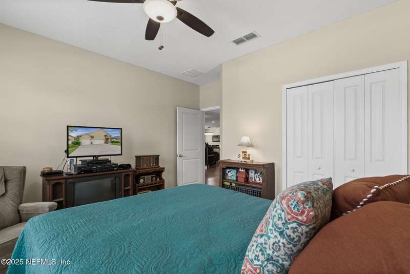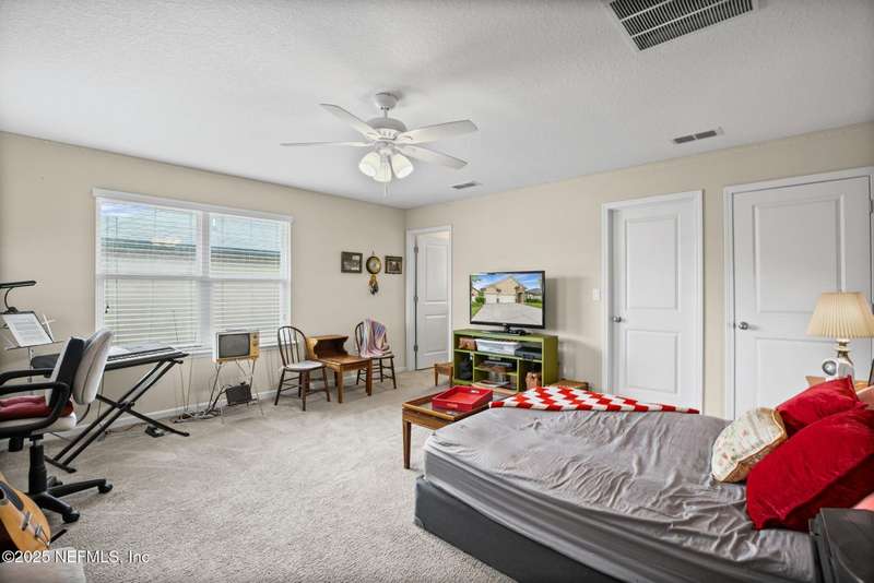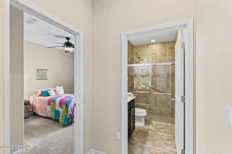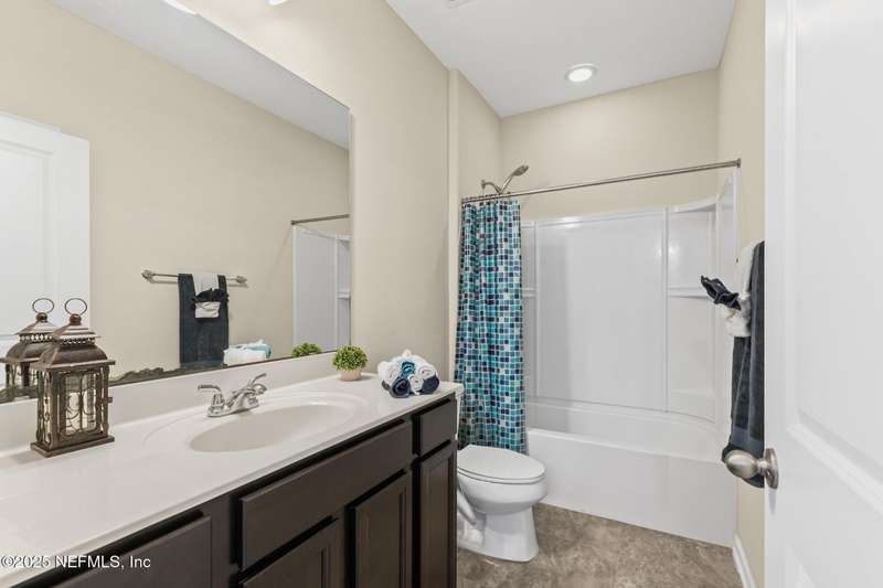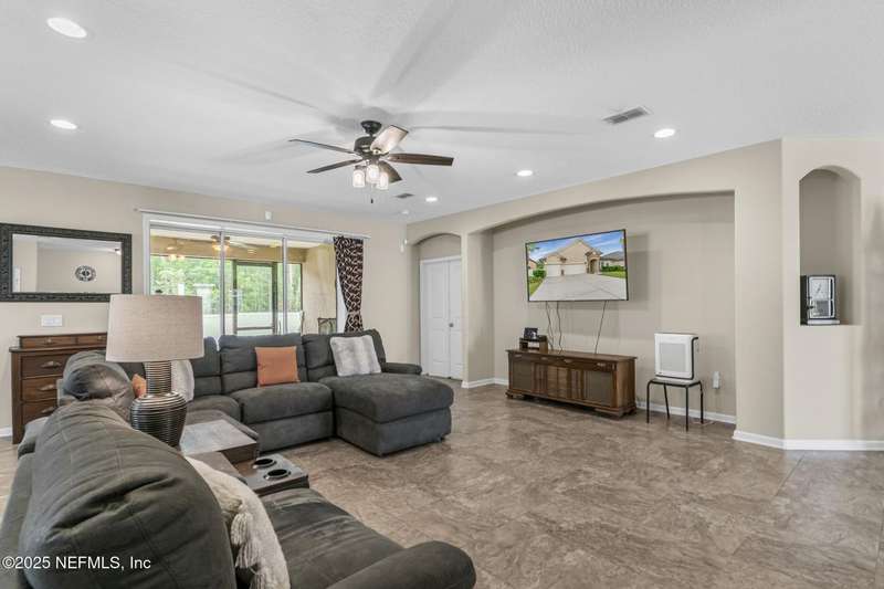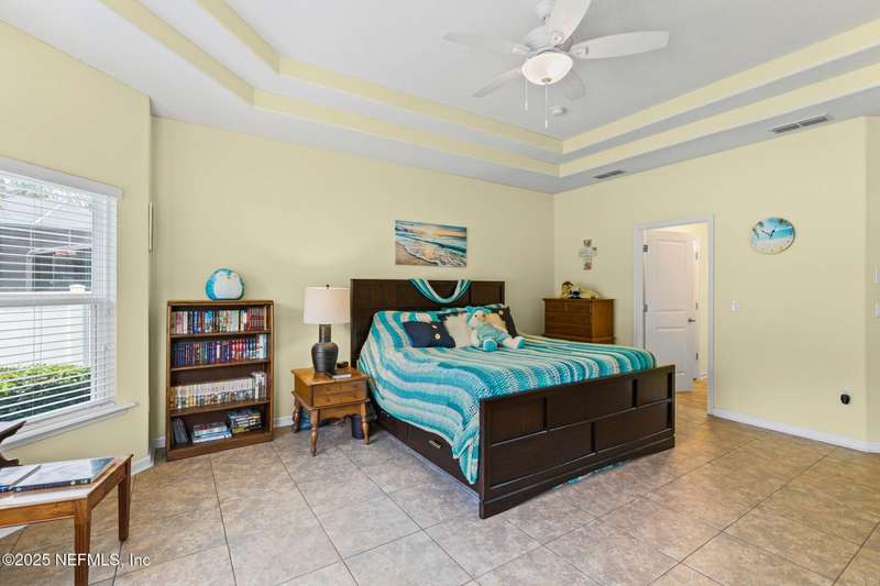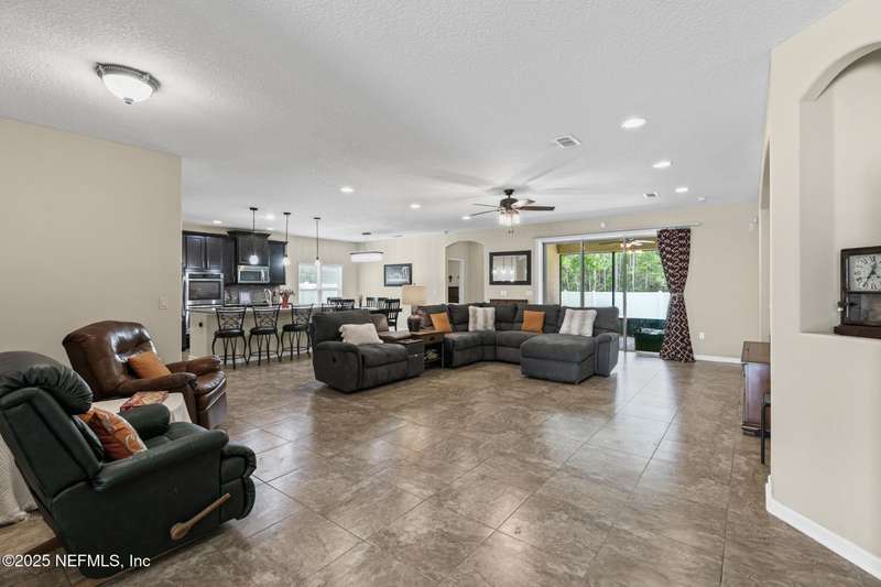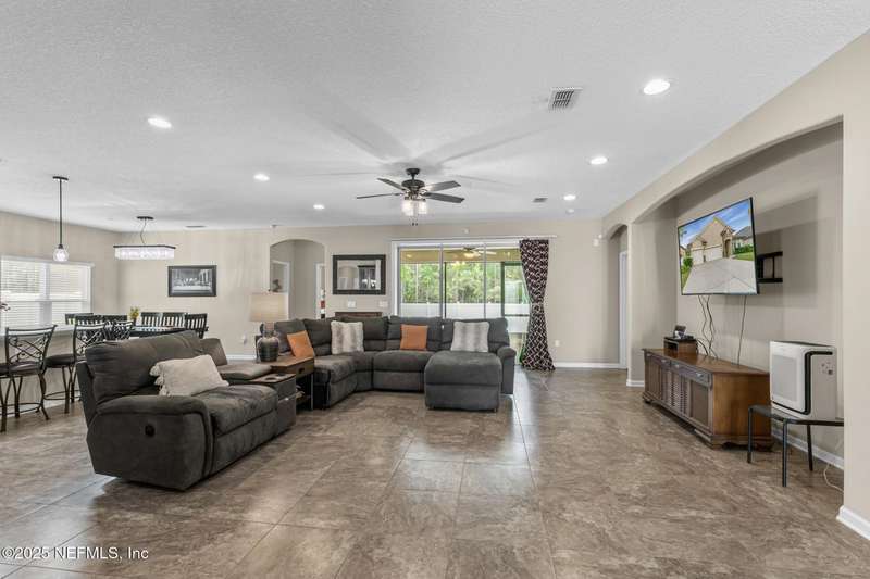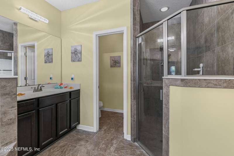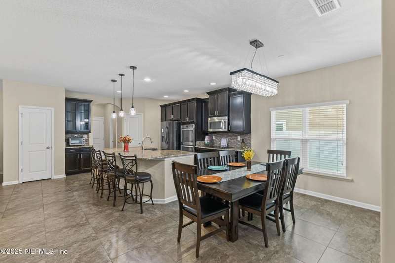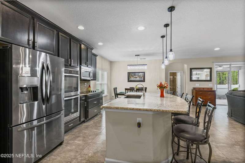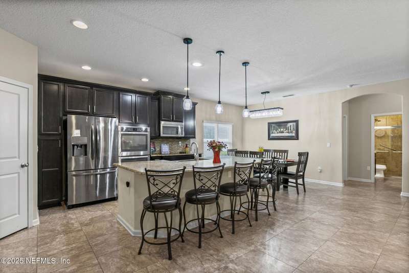 Step into effortless Florida living at this beautiful home in sought-after Durbin Crossing. A stately double front door opens to a wide foyer and an airy great-room layout finished in tile that runs through all main spaces and the primary suite, making everyday upkeep a breeze. Anchoring the heart of the home is a chef-friendly kitchen: gleaming granite counters, espresso 42-inch shaker cabinetry, stainless appliances, a walk-around island with bar seating, custom pendant lighting, and a walk-in pantry. The adjoining dining and living areas flow seamlessly to the covered lanai-perfect for indoor-outdoor entertaining.Five generous bedrooms and four full baths give everyone elbow room. This is a great entertaining house; as you enter, you're greeted by an open floor plan that's ideal for gatherings. The main-level primary retreat enjoys tray ceilings, a spa-inspired bath with frameless glass shower, soaking tub, dual vanities, and oversized walk-in closets. Two guest suites have their own baths for ultimate privacy, while a separate upstairs bedroom-and-bath combo is ideal for multi-gen living or a quiet office.Key upgrades include:- Three-car garage with professionally coated epoxy floor and built-in storage;- Whole-house water-softener system;- Fully fenced backyard with no rear neighbors - just tree-top views and superb privacy the sellers love!Residents enjoy two resort-style amenity centers featuring family and competition pools with splash park, lighted tennis and basketball courts, fitness center, playgrounds, multi-use fields, food-truck nights, and year-round community events. Zoned for top-rated St. Johns County schools.With its entertainer's layout, thoughtful upgrades, and access to one of Northeast Florida's best amenity packages, this home checks every box - schedule your private tour today and see why Durbin Crossing is the place to call home!