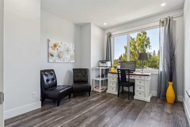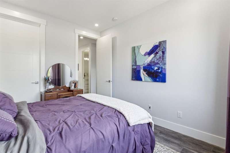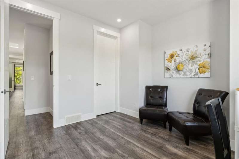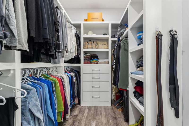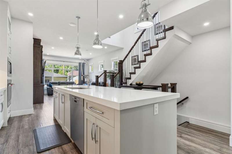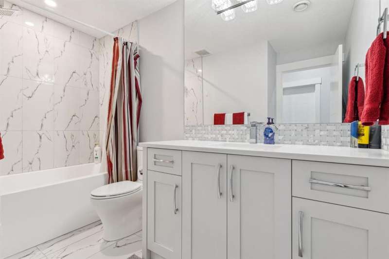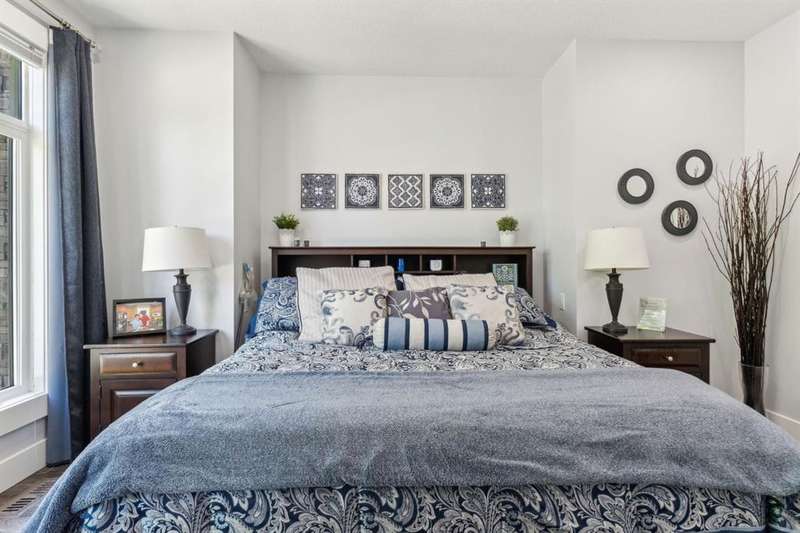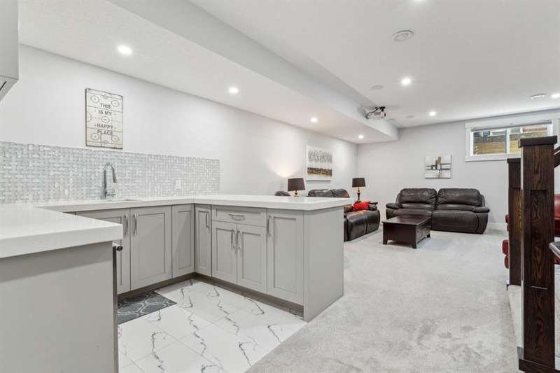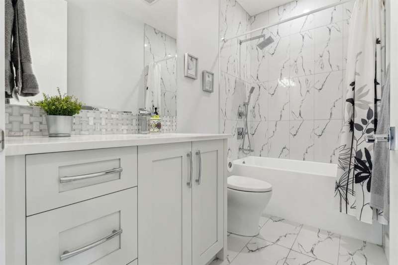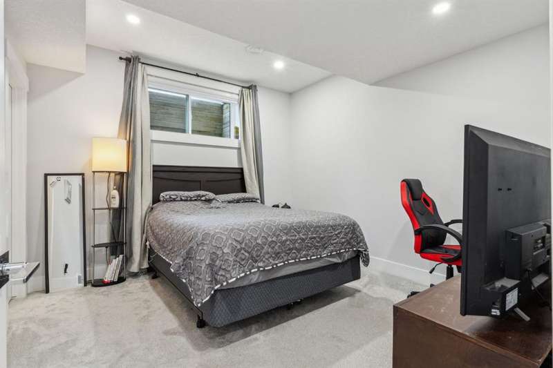 Boasting over 3,300 developed sq ft this impeccable DETACHED home is situated on a quiet picturesque, tree-lined street. As you approach you will notice the masterfully crafted curb appeal, exposed aggregate walkway and attention to detail. You are then greeted by soaring 10-foot ceilings, gleaming hardwood floors and a bright dining room. The central gourmet kitchen is a focal point with custom cabinets that reach to the ceiling, including pull outs and glass inserts, gorgeous 2 ¼” Quartz counters, under cabinet lights, plenty of storage with a corner pantry, and high-end SS appliances including a gas cooktop, built-in wall oven/microwave, chimney style hood fan and Bosh dishwasher. The expansive 10 ft island is ideal for entertaining and seamlessly connects to the spacious living room. The spacious living area is showcases a gas fireplace with stone surround and a built in detail. The main is complete with the powder room tucked away for privacy and a well thought out mud room with custom built-ins. The private well sized SUNNY WEST backyard has plenty of grass, an exposed aggregate patio and path plus a convenient BBQ gas line. Making it the perfect place to enjoy the outdoors. As you head to the second level you will notice the elegant railing, and 9’ ceilings. There are 2 well sized bedrooms with walk-in closets including custom built-ins, a nicely appointed 4 piece bath, and a convenient upper laundry room with sink and plenty of cabinets for storage. The primary is a true sanctuary with large windows, a private balcony to enjoy morning coffees, and a big walk-in closet with built-ins. French doors lead to your luxurious ensuite. This spa inspired space includes heated tile floors, a steam shower, freestanding tub, a private water closet, dual sinks and comfort height stone counters. The fully developed lower level with in SLAB HEAT, is fabulous for those Alberta winters. There is a large rec room showcasing a projector and 100 inch screen with custom cabinetry, perfect for movie night or your favorite sporting events. This space is complete with a sleek wet bar including beverage fridge. An additional fourth bedroom with walk in closet and a full 4-piece bathroom. Other noteworthy features are the Double detached garage with 220 wiring, the comforts of air conditioning, upgraded solid core doors, flush mount vents, built in speaker system, security cameras, upgraded roof with full ice and water shield membrane, upgraded roof ventilation and added R50 blown insulation creating energy efficiencies. Just minutes from excellent schools, athletic fields, and Westhills Shopping Centre, including Save-On-Foods, GoodLife Fitness, Cineplex, The Keg, Tim Hortons, and much more. Enjoy quick access to Stoney Trail, Sarcee Trail, and downtown. Don’t miss your chance to own this pristine home. View the virtual tour or book your private showing today!