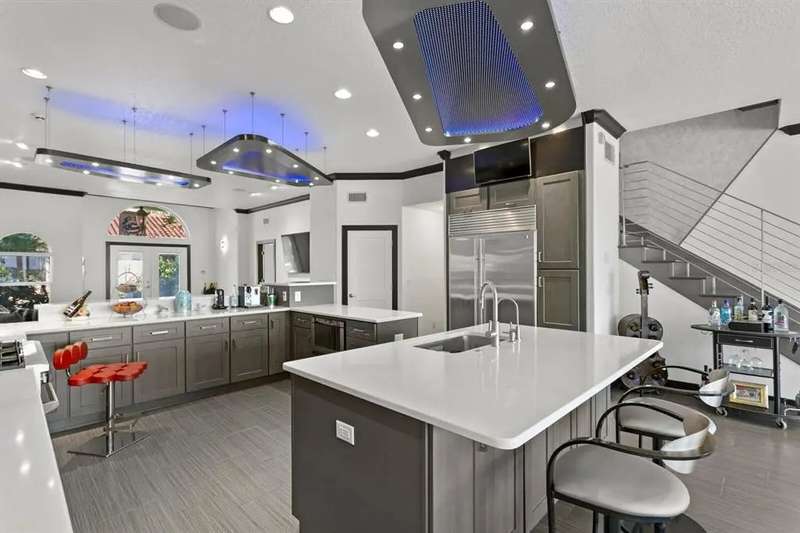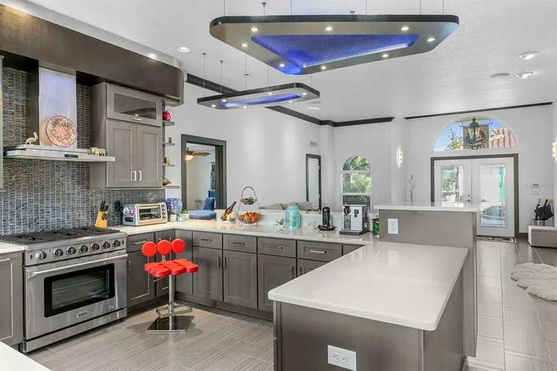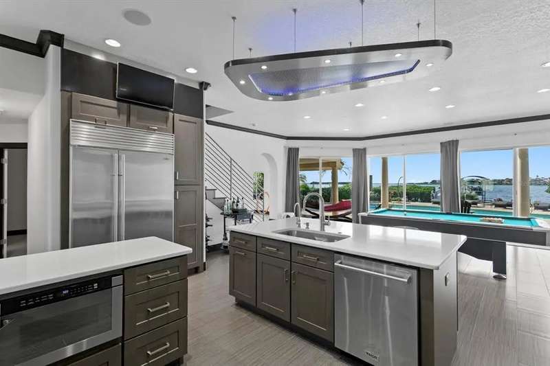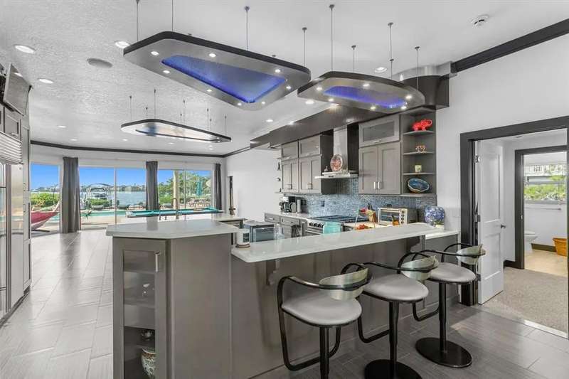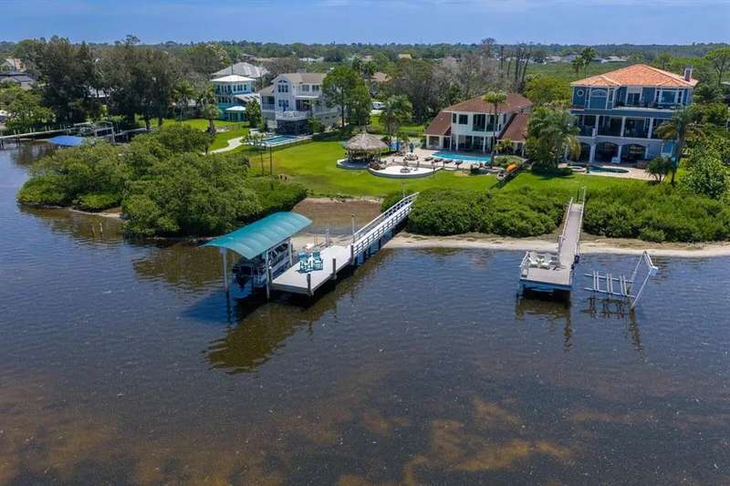 Welcome to 1632 Sea Breeze Drive, an extraordinary waterfront estate on coveted Sea Breeze Island in Tarpon Springs. Located directly on the Gulf. This 4,288 sq ft two-story residence offers 4 bedrooms, 3 full baths, 2 half baths, and an unmatched blend of elegance, privacy, and recreation. Set on nearly an acre (144x290) with 144 feet of pristine Gulf frontage and a separately deeded lot, this property is a rare find. A circle driveway framed by lush landscaping leads to a welcoming entry and a 2-car detached garage. The home is topped with a classic tile roof, blending durability and timeless style. Inside, the entire downstairs has been beautifully remodeled, including a designer kitchen with all new THOR appliances, a Sub-Zero refrigerator, gas stove, large walk-in pantry, and custom cabinetry with a central island with eating space. Newly updated bathrooms complement the fresh, modern design. Additional interior highlights include a private office, home gym, and a second-floor media room complete with a built-in bar, wine cooler, drink fridge, and storageâ??ideal for entertaining family and guests. The ownerâ??s suite serves as a private sanctuary, featuring panoramic Gulf views, a spa-inspired bath with shower, jetted tub, and dual sinks, double walk-in closets, and a private balcony overlooking the water. Three additional bedrooms and multiple living areas ensure comfort and privacy throughout the home. Outdoor living is truly resort-style: enjoy a sparkling saltwater pool with brand-new equipment, a fully equipped outdoor kitchen with built-in gas grill, tiki hut lounge, expansive firepit area, and a private pickleball court. The brand-new dock (2024) features Trex decking, updated electrical, a fish-cleaning station, and a 10,000 lb boat liftâ??perfect for boating, fishing, and Gulf-front sunsets. Located minutes from the historic Sponge Docks, Fred Howard Beach and vibrant downtown Tarpon Springs, this Gulf-front estate combines exclusivity, modern updates, and the ultimate Florida coastal lifestyle.