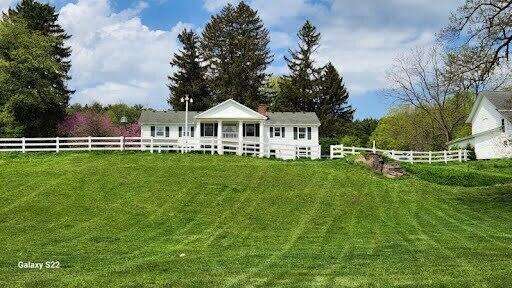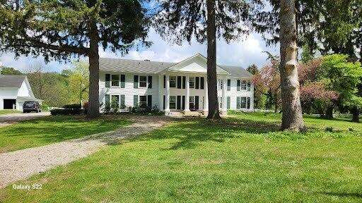 Introducing 8044 Dexter Pinckney Road, a once-in-a-lifetime riverfront estate where timeless character meets endless possibility. On the market for the first time in 57 years, this extraordinary property spans nearly 8 acres with almost 900 feet of private Huron River frontage, framed by Metropark land for unmatched privacy. A sweeping curved staircase welcomes you inside, where crown moldings, formal dining and living spaces, and a first-floor office set the tone. The family room, anchored by a fieldstone fireplace and exposed beams, opens to a sunlit breakfast nook and chef's kitchen with granite countertops and custom cabinetry. Upstairs, all bedrooms are thoughtfully placed, including a primary suite with a Romeo and Juliet balcony overlooking the manicured grounds and river. A private one-bedroom apartment offers flexibility for a caretaker or multigenerational living. The grounds include fenced pastures, multiple outbuildings, and a 6,000 sq. ft. indoor riding arena perfect for equestrian pursuits, a wedding venue, or a car collection. Mature trees and curated landscaping complete this rare offering, a true piece of Dexter history ready for its next chapter in luxury living.