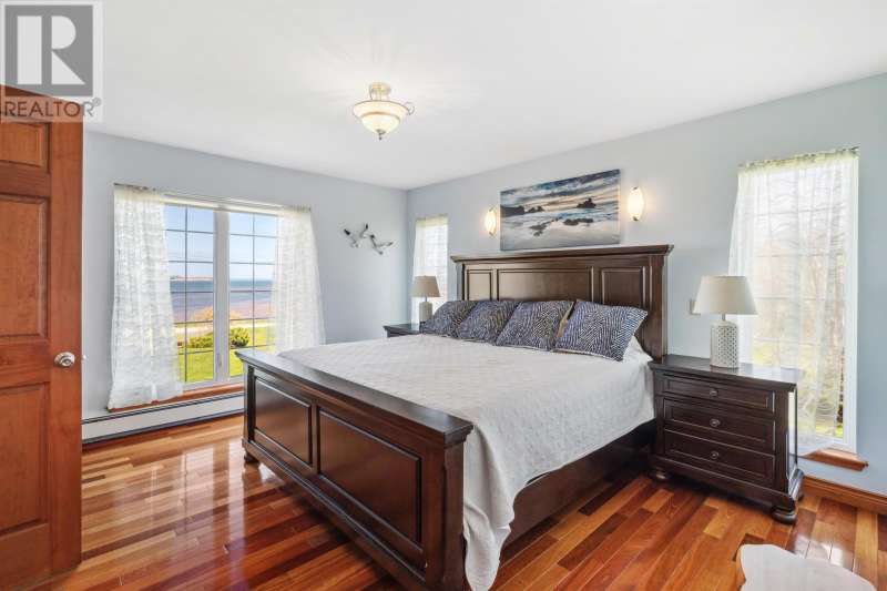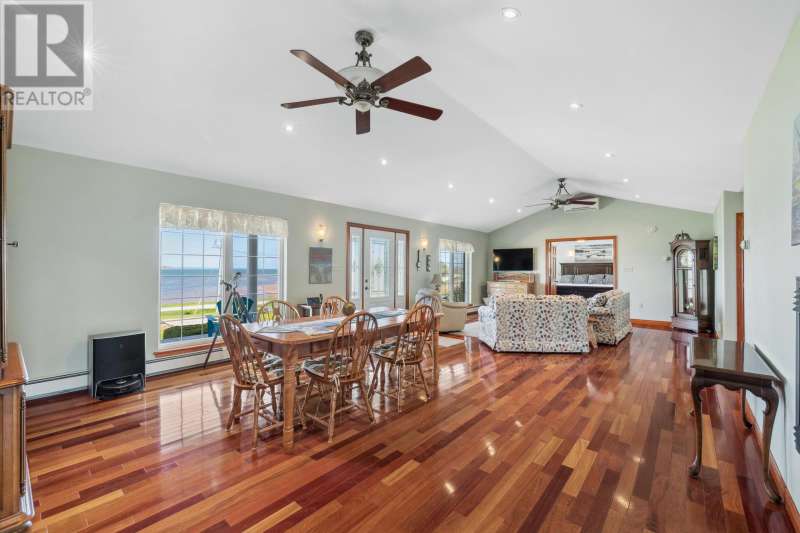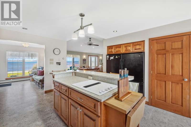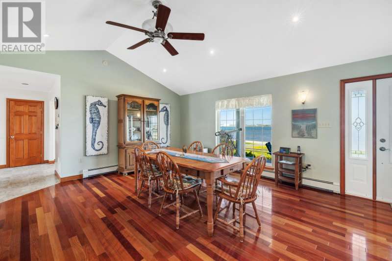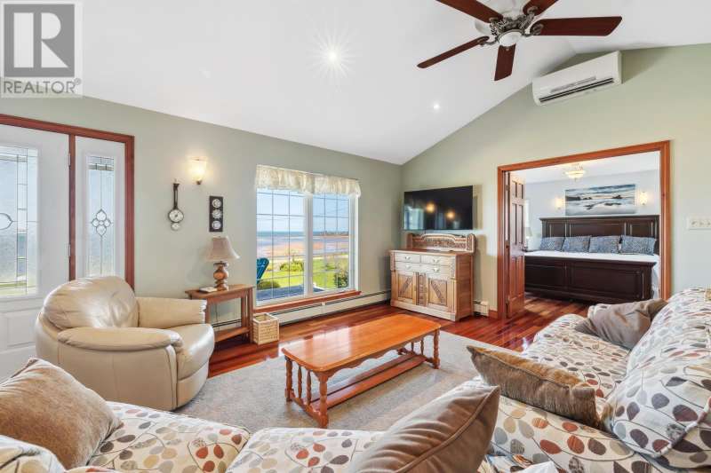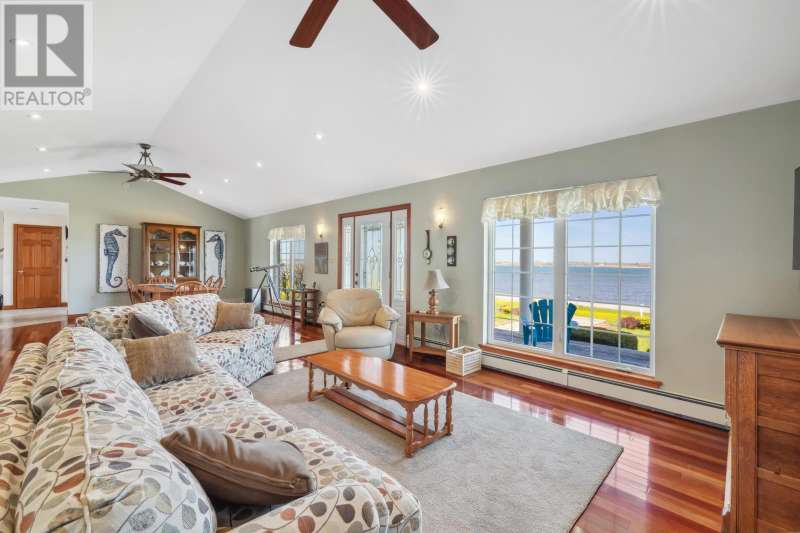 Stunning views from all sides, this ocean front home with protected beach front is sure to bring peace and joy to its new owners. Open concept main floor offers a large side entry, a great chefs kitchen with 2 pantries, double fridge and freezers and back deck access to your outdoor screened gazebo, BBQ and/or smoker area. Large front windows looking out across to Boughton Island through out the dining room and living room, flow through the French doors to the master bedroom, with walk in closet, and full bathroom complete w soaker tub and separate stand up shower. Breathtaking sunrises guaranteed! 2 additional bedrooms and full bathroom round out main floor living space. Attached 2 car, heated garage with access to a finished lover level with family room, full bath, and 3 more bedrooms with double closets, bonus room, and mechanical room housing geo thermal in floor heat system! Laundry on both floors, front and back deck space, circular driveway, new steel roof, new auto generator are more notable features. All measurement approx. (id:2471)