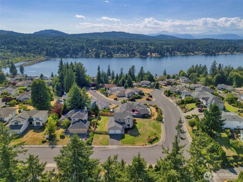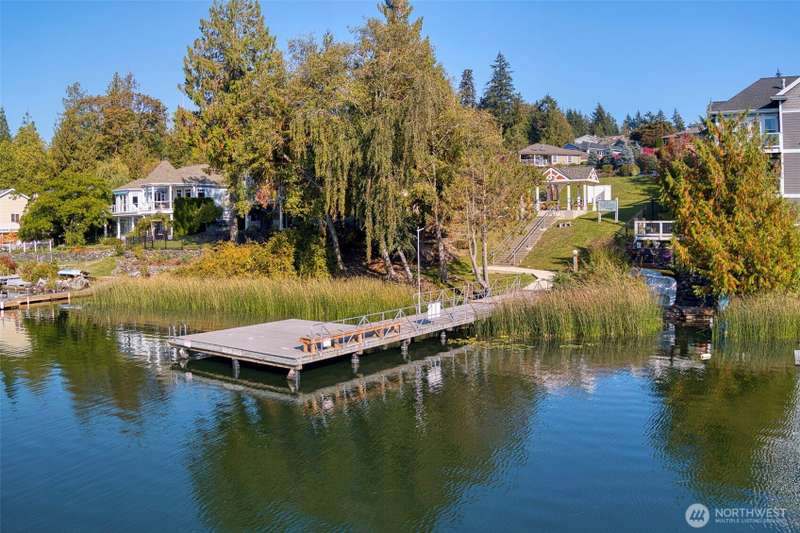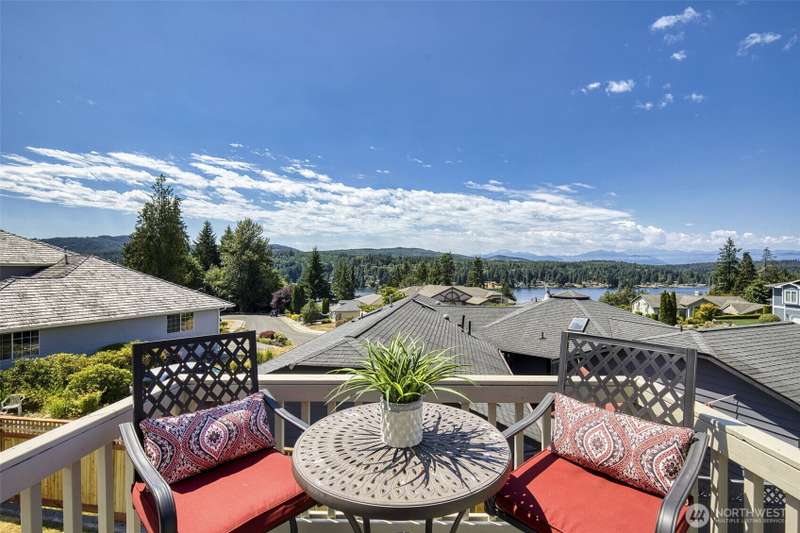 Tucked into the desirable Dockside at Kitsap Lake community, this well-appointed 2,056 sqft home blends comfort, function & LOCATION! Enjoy peekaboo lake & Olympic Mountain views from the upper level, plus access to a gated dock & lakefront park. Sited on a 0.22-acre corner lot, this home offers a 2-car garage & fully fenced backyard. Inside features include bamboo flooring, a cozy wood burning fireplace, & granite kitchen with peninsula seating/SS appliances. The upstairs primary suite is a peaceful retreat with private view balcony, large closet, & spa-like bathroom. Two more bedrooms & updated full bath complete the second floor. Main floor bedroom converted to office/den. Min. to shopping, bases, ferries & more! Inspection available.