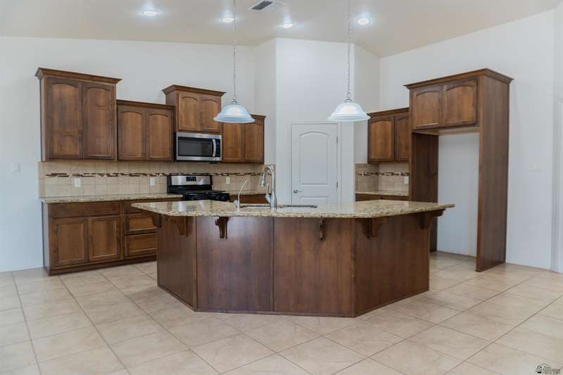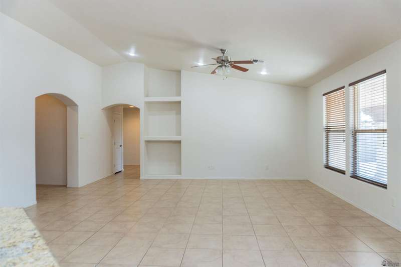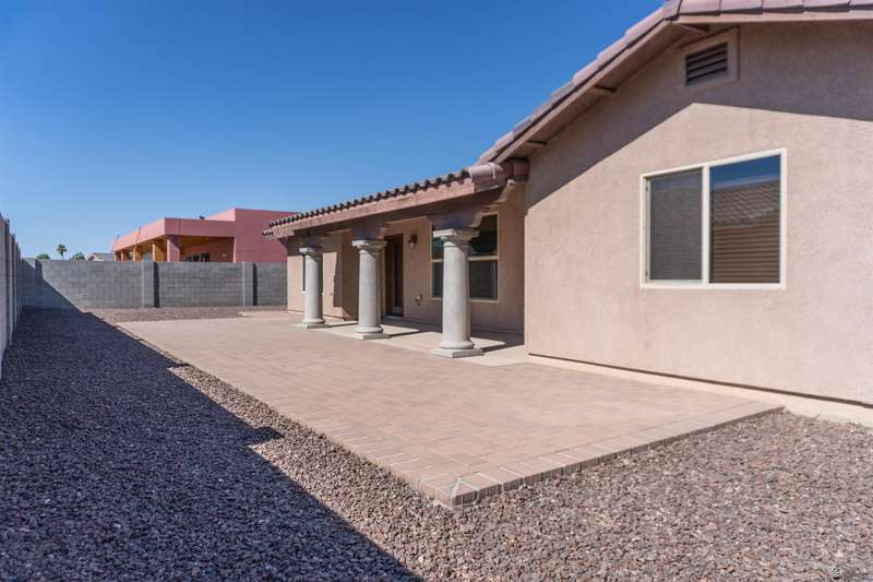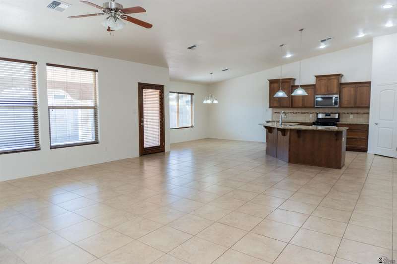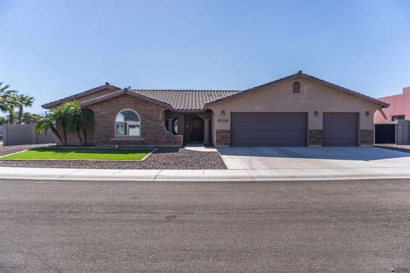 4-bedroom, 3 bath, 3-car garage on a corner, 10,221 sq ft lot! A welcoming stone-accented entryway guides you to an airy great room with vaulted ceilings, recessed lighting and easy-care tile flooring throughout the main living areas. The cook’s kitchen features granite countertops, a gas range, center island with pendant lighting, a walk-in pantry, and generous cabinet space. The primary suite includes double sinks, granite vanity, and a large walk-in closet. Low-maintenance backyard designed for Yuma living—covered patio, extended paver area, gravel landscaping, block fencing, and double gates for convenient side-yard access. Located near I-8 and shopping centers.