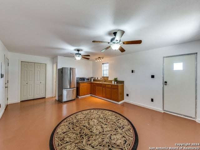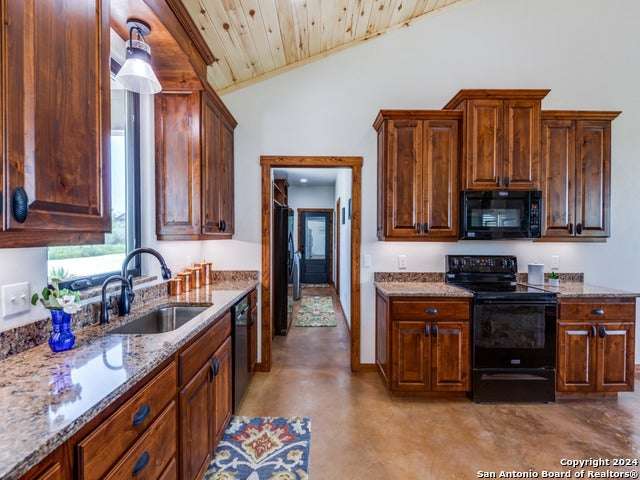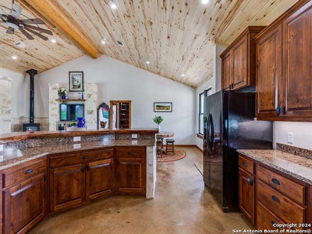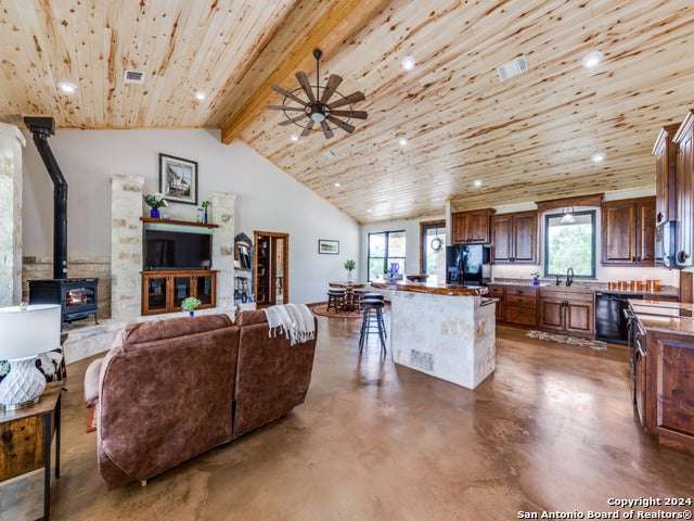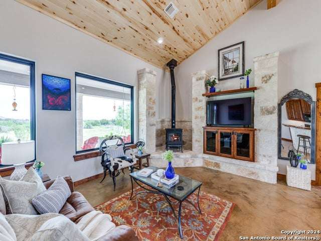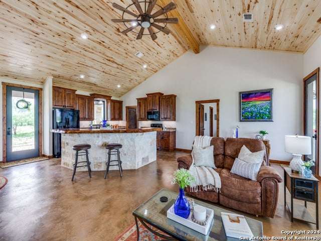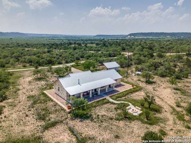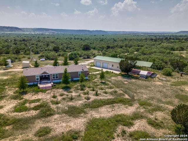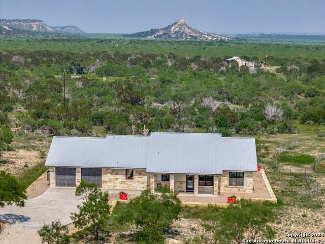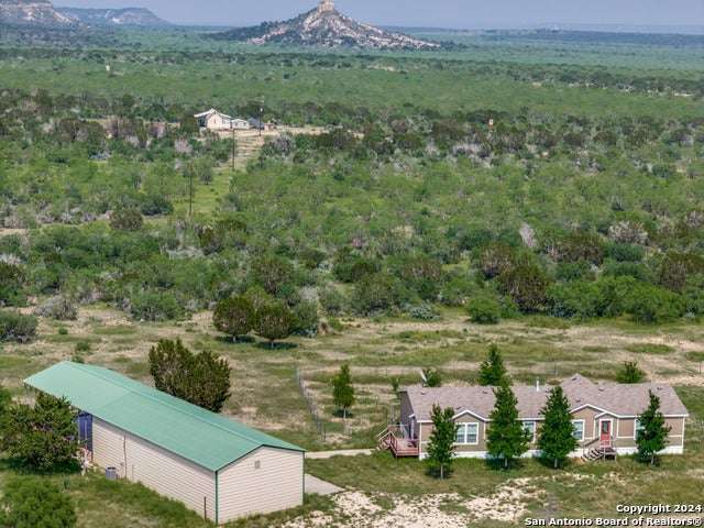 Exceptional Hill Country Ranch Estate with a gorgeous Custom home finished in '22 with the finest craftsmanship, Guest house, huge Workshop with Caretaker quarters, attached oversized RV parking pad and a storage building with covered parking! Located at the highly desirable gated Big Draw Ranches, this AG EXEMPT estate spans 66.67 breathtaking acres. Offering true privacy amongst a lush landscape of wildflowers and native trees that provide cover for wildlife for the hunting enthusiast in a captivating and serene setting! A well-fed pond supports wildlife that include White tail Deer, Axis, Turkey, Doves, Roadrunners and Hogs. Enter through a gated entrance that leads to the impressive home with stone exterior, accented by farmhouse vertical siding, standing seam metal roof and 2 covered patios. Enjoy magnificent morning sunrises, dramatic sunsets and starlit nights beside the stone firepit. This extraordinary residence is a balance of rustic elegance with superior artistry! The home encompasses 3 bedrooms, 2 baths with 2,904 sq.ft. of living space and an attached oversized 2 car garage. The home features a light filled Great room with a vaulted ceiling clad with Colorado Milled Aspen, a wood burning stove, stained concrete floors and oversized windows to take in the wildlife and splendor of the property with stunning views of "Tea Cup Mountain"! Open concept of Kitchen with Dining and Living area make this an ideal layout for entertaining and relaxation. Gourmet Kitchen features custom cabinets, granite counters and a breakfast bar hand-crafted of mesquite. Woodwork throughout the home is hand made by 1 cabinet maker Solid hardwood of Knotty Alder for Kitchen cabinetry, Entertainment center, Bookcase, Mud/ Laundry room, Bath cabinets and Guest room Murphy bed. Interior doors of Solid hardwood Knotty Alder. Accent walls in the Primary Suite and 3rd bedroom (used as an office) are rough bandsaw cut Colorado Pine. The luxurious Owner's bedroom with 5-piece spa en-suite is a serene sanctuary! 2 spacious secondary bedrooms share a bath. The guest house is situated to afford privacy to the principal residence with a natural tree line. Custom built 2017 Palm Harbor "Big Bend" manufactured home with 4 bedrooms, 2 baths with 2,223 sq.ft. is filled with natural light! Open plan layout with living room featuring a wood burning stove. A fully outfitted kitchen to meet all your guests needs. Inviting Primary bedroom with oversized en-suite. Finished with an outdoor deck and a fenced area planted with fruit trees. Upgrades: spray foam insulation under the home, new water heater, HVAC upgraded, insulation package and double pane windows. For all your projects and toy storage is a 26x60 Metal Workshop, adjoining caretaker's quarters and attached 26x40 covered RV port with outdoor sink. Improvements: foam insulation, electrical, HVAC/Heat pump. There is a game cleaning station next to the workshop. Hunting blinds, on demand and timed feeding stations are provided for wildlife. Well yield of 20+ GPM with water level 114 ft. below land surface. Well and Pump house system upgrades, and a 2,800-gallon concrete holding tank. Residence and Guest house have dedicated Generac Generators, each supported by Propane Tanks. Residence, Guest house and Workshop with water softeners. Perimeter Fencing- five sides have 4- or 5-foot fencing, the Eastern side has posts with barbed wire. This remarkable Estate provides the consummate setting to entertain guests, hunt and experience the pleasure of the Hill Country while creating everlasting memories! Located 8 miles from Junction, 1 hr. to Kerrville and Fredericksburg, 45 min. to Mason, 11/2 hrs. to Boerne and just under 2 hrs. to San Antonio.