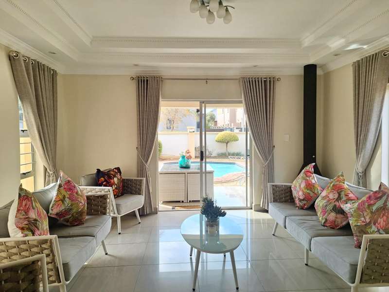 Double storey Family Home with study and staff room This double storey family home of 397m2 is situated in the secure Midlands Estate, on a stand of 900m2 and might be just what you are looking for. A welcoming entrance leading to private lounge with bar opposite to the lounge, walking further you will be amazed with this beautiful granite kitchen, which is the heart of this house, it offers 2x extractor fan?ÇÖs, gas stove and electric stove & hob with eye level oven, pantry and separate scullery. The dining & patio area is open plan to the kitchen. The lower level offers also a separate study room (space for him & her), an en-suite guest bedroom and a guest toilet. The upper level offers a spacious pyjama lounge, large main bedroom with walk in cupboards and en-suite upmarket bathroom, 2 spacious bedrooms share 1 full bathroom. All the bedrooms are tiled, and all has access to the balcony. Double garage with direct access to the house. Staff room with shower. Indoor and Outdoor patio with built in braai overlook the sun-sparkling pool and green garden. Ideal home to entertain family & friends. Midstream, established in 2003, is a sought -after residential estate that offer a comfortable village lifestyle in Gauteng. Security and secure living are top priorities. Midstream excellent security measures and emphasis on zero tolerance ensure that residents can feel safe and families are free to relax and enjoy their time spent at home. Midstream offers excellent schools, a large variety of recreational activities and two shopping centres. Midstream is conveniently located midway between the business hubs of Johannesburg, Pretoria and Ekurhuleni. Easy access to the N1, N14 and R21 highways, proximity to two Gautrain stations and a quick 35km drive to OR Tambo International Airport, makes travelling for business or pleasure a hassle-free experience. Come enjoy lifestyle living.