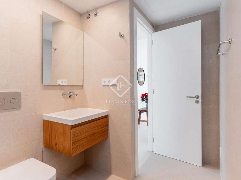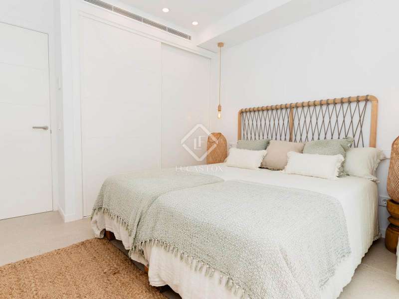 This duplex penthouse is part of Arenal Beach, a new build with a privileged location, very close to the beach and overlooking the sea, on the fantastic island of Menorca, with its enviable climate. All this without sacrificing access to all the necessary daily amenities . This is a gated community with various security measures for the peace of mind of its residents. It will also offer a wide range of community amenities and facilities. These include a reception area, a spa with a jacuzzi, sauna, and cold baths, a fully equipped gym, and a swimming pool with a beach area, a chill-out area , and a children's play area. The apartment benefits from a modern, elegant, and minimalist design with open spaces and white tones, as well as large windows that allow in abundant natural light and offer excellent sea views. The property features a large living-dining room with an open-plan kitchen and access to a huge, partially covered terrace with a dining room and chill-out area, perfect for hosting meetings, entertaining, or simply relaxing while enjoying Menorca's magnificent climate. The night area has a total of two bedrooms: the main bedroom with its private bathroom and a double bedroom . The property also includes another bathroom to serve the remaining rooms. On the upper floor , there is a huge open terrace with a solarium area and a private pool. Among its features, we can highlight the Technal aluminum exterior carpentry with thermal break and double glazing, the home automation system, the aerothermics system for domestic hot water production, and the ducted air conditioning with heat pump. The kitchen and bathrooms are fully equipped. The kitchen includes top-of-the-line appliances from Bosch, Neff, and similar appliances, along with a Neolith countertop, while the bathrooms feature Porcelanosa fixtures. Contact us for more information.