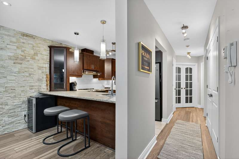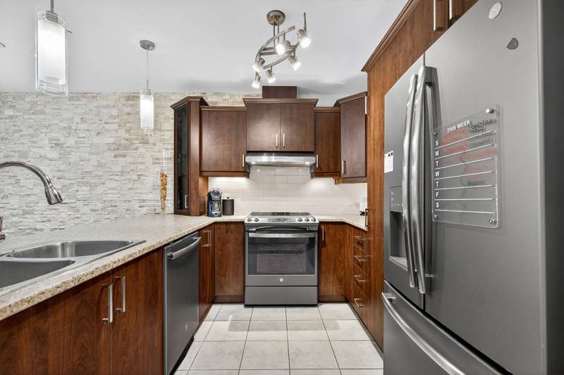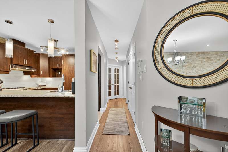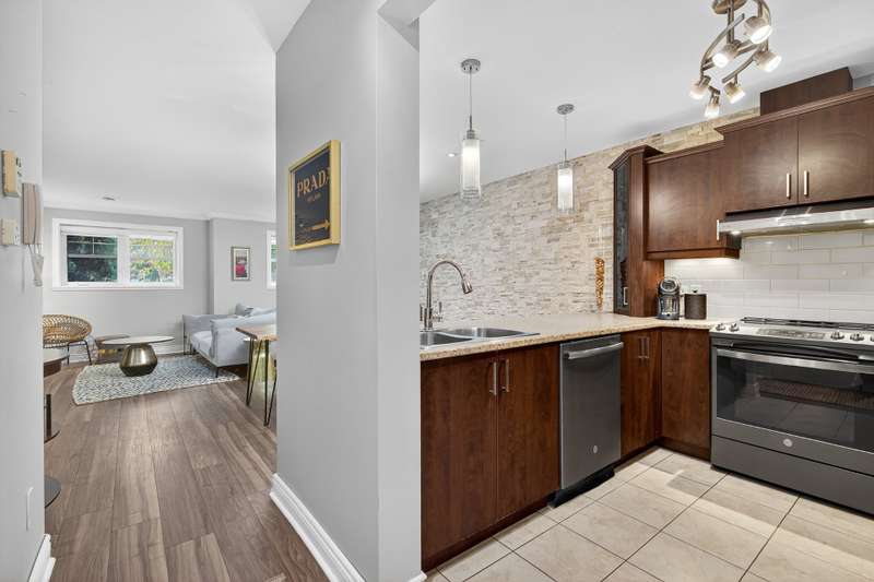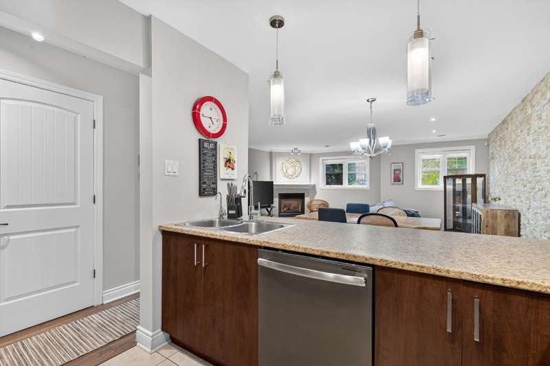This impeccably maintained and thoughtfully designed condo comprising two generously proportioned bedrooms and a well-appointed full bathroom with heated floors is complemented by an open-concept living, dining, and kitchen area. A private garden level terrace and exterior parking space enhance everyday convenience. The gas fireplace adds warmth and character to this well-kept condo. Ideally located, residents enjoy a charming neighbourhood in proximity to reputable schools, everyday amenities, cycling paths, and principal highways 13, 440, 640 and 15 making it ideal for families and professionals alike.