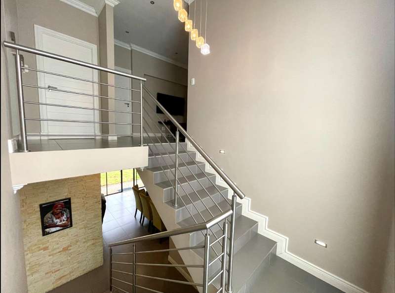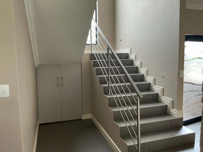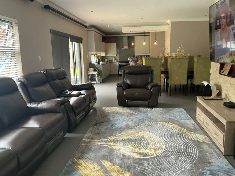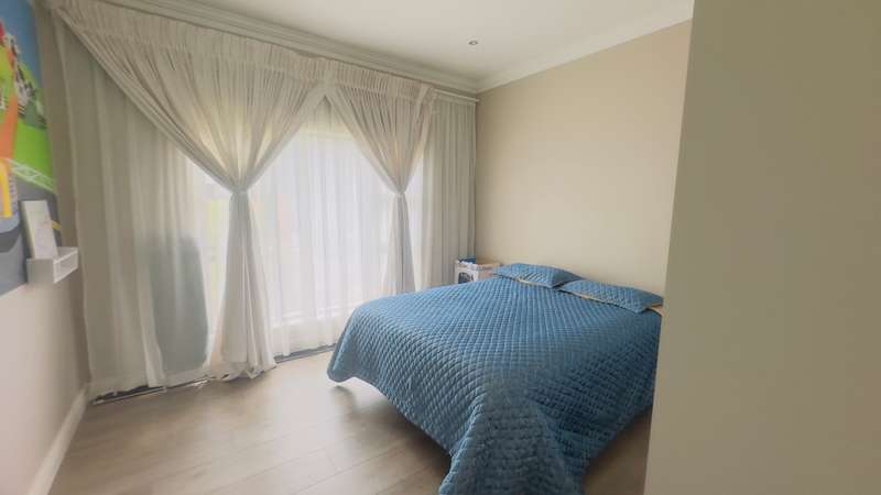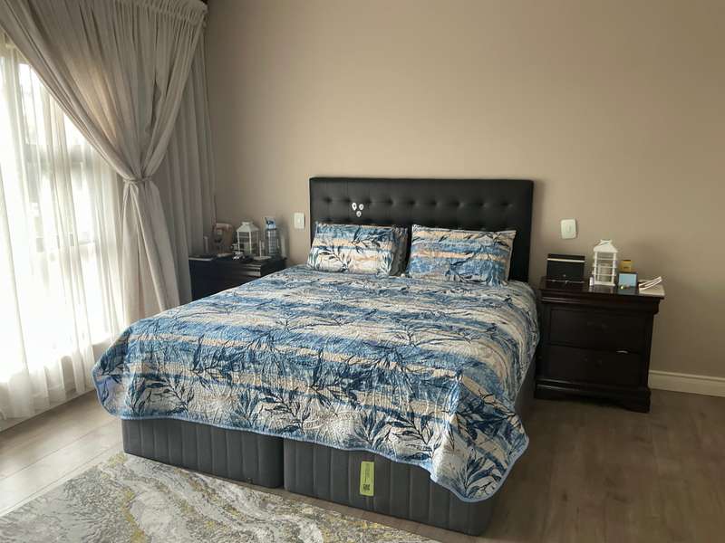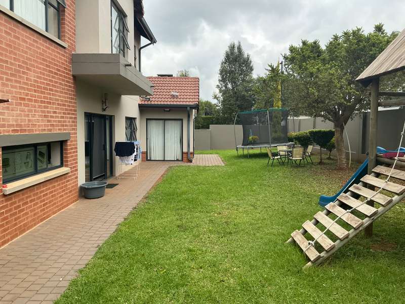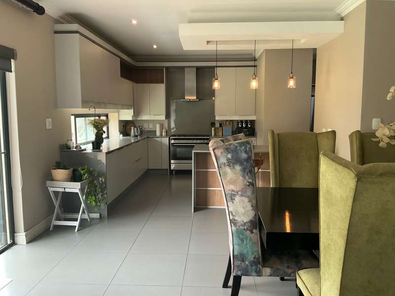 This extraordinary 4-bedroom home reimagines luxury living with its masterful fusion of modern design, comfort, and sustainability, inspiring a new standard of elevated living. Situated on a spacious plot, this property offers the perfect setting for both family living and entertaining, where cherished memories are waiting to be created. The flowing open-plan living areas seamlessly connect the formal lounge to the dining area, leading out to a covered patio perfect for year-round gatherings, complete with a built-in braai for effortless entertaining and warm hospitality. The state-of-the-art kitchen is a culinary haven, equipped with a gas stove, electric oven, extractor fan, and breakfast nook, while the separate scullery provides ample space for appliances and storage, empowering your inner chef. This home's commitment to sustainability is evident in its 5kW solar system, backup lithium battery, and rainwater harvesting system, making it a shining example of eco-friendly living and a beacon of hope for a brighter future. Upstairs, the sense of luxury continues with a cozy pajama lounge and three generously sized bedrooms, including a sumptuous main suite complete with air conditioning, walk-in closet, and elegant en-suite bathroom, designed to be your serene retreat. Two additional spacious bedrooms boast ample natural light and built-in cupboards, while a convenient guest bathroom and private guest bedroom enhance the home's liveability and warmth. The staff quarters are equally well-appointed, featuring built-in cupboards and a full bathroom, ensuring a sense of community and belonging. Throughout this exceptional home, modern finishes, abundant storage, and an abundance of natural light create a truly uplifting living environment, where every day feels like a new beginning. The property's outdoor spaces are equally impressive, with a lush garden, outdoor courtyard, and automatic sprinkler system creating a vibrant oasis, perfect for relaxation and rejuvenation. A double automated garage provides secure parking, while a side entrance offers additional storage or parking options, adding convenience to your daily life. Located within a secure gated estate, this home offers unparalleled peace of mind, convenience, and access to top schools, shopping centers, and parks, providing the ultimate lifestyle. Representing the perfect fusion of luxury, sustainability, and practicality, this extraordinary home is a rare find, waiting to inspire your dreams and aspirations. Schedule a private viewing today and discover the limitless possibilities that await