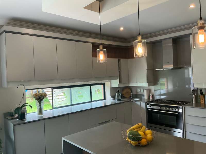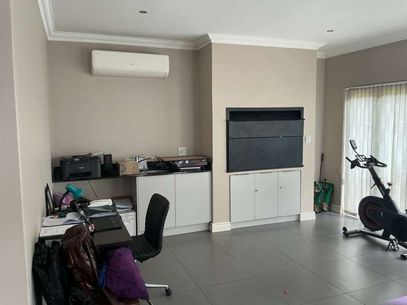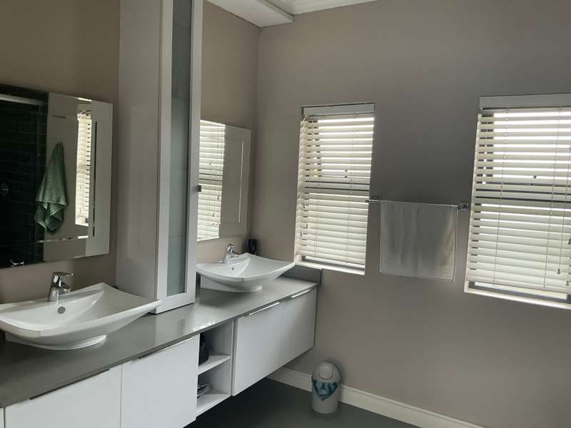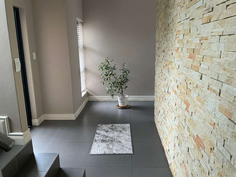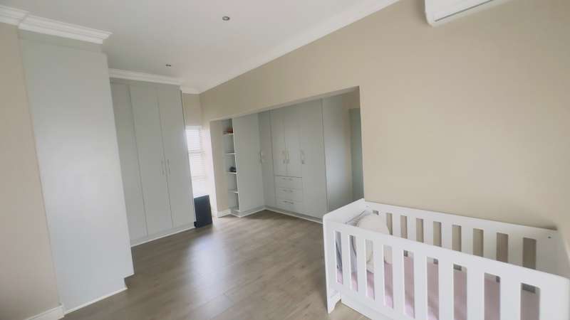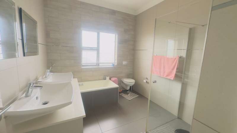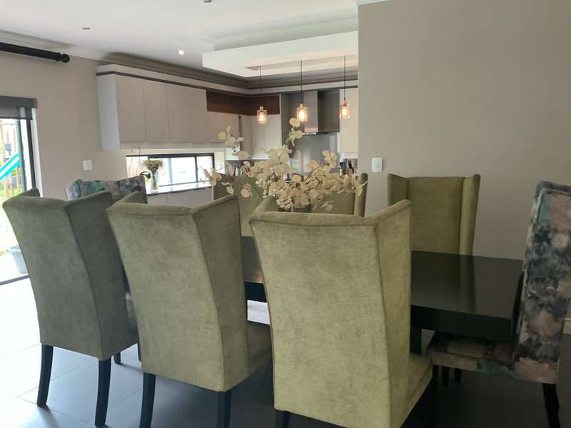 This extraordinary 4-bedroom home reimagines luxury living with its masterful fusion of modern design, comfort, and sustainability, inspiring a new standard of elevated living. Situated on a spacious plot, this property offers the perfect setting for both family living and entertaining, where cherished memories are waiting to be created. The flowing open-plan living areas seamlessly connect the formal lounge to the dining area, leading out to a covered patio perfect for year-round gatherings, complete with a built-in braai for effortless entertaining and warm hospitality. The state-of-the-art kitchen is a culinary haven, equipped with a gas stove, electric oven, extractor fan, and breakfast nook, while the separate scullery provides ample space for appliances and storage, empowering your inner chef. This home's commitment to sustainability is evident in its 5kW solar system, backup lithium battery, and rainwater harvesting system, making it a shining example of eco-friendly living and a beacon of hope for a brighter future. Upstairs, the sense of luxury continues with a cozy pajama lounge and three generously sized bedrooms, including a sumptuous main suite complete with air conditioning, walk-in closet, and elegant en-suite bathroom, designed to be your serene retreat. Two additional spacious bedrooms boast ample natural light and built-in cupboards, while a convenient guest bathroom and private guest bedroom enhance the home's liveability and warmth. The staff quarters are equally well-appointed, featuring built-in cupboards and a full bathroom, ensuring a sense of community and belonging. Throughout this exceptional home, modern finishes, abundant storage, and an abundance of natural light create a truly uplifting living environment, where every day feels like a new beginning. The property's outdoor spaces are equally impressive, with a lush garden, outdoor courtyard, and automatic sprinkler system creating a vibrant oasis, perfect for relaxation and rejuvenation. A double automated garage provides secure parking, while a side entrance offers additional storage or parking options, adding convenience to your daily life. Located within a secure gated estate, this home offers unparalleled peace of mind, convenience, and access to top schools, shopping centers, and parks, providing the ultimate lifestyle. Representing the perfect fusion of luxury, sustainability, and practicality, this extraordinary home is a rare find, waiting to inspire your dreams and aspirations. Schedule a private viewing today and discover the limitless possibilities that await