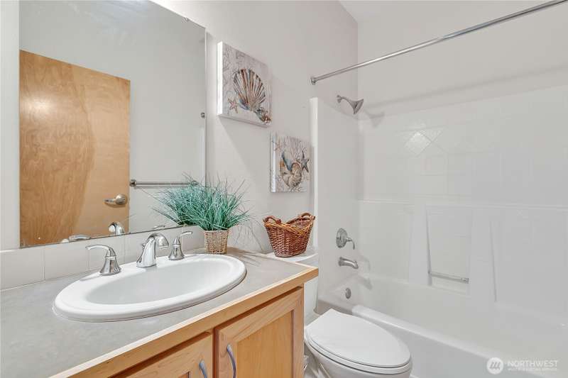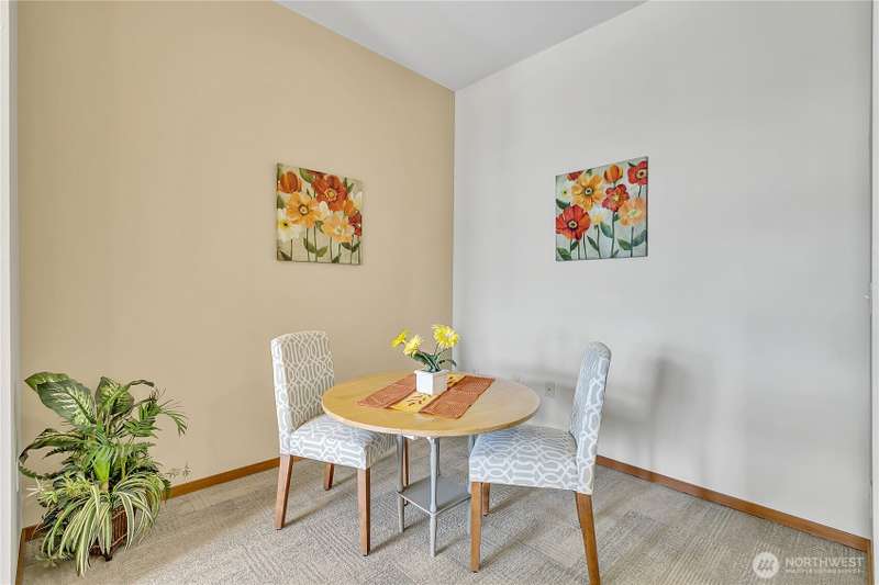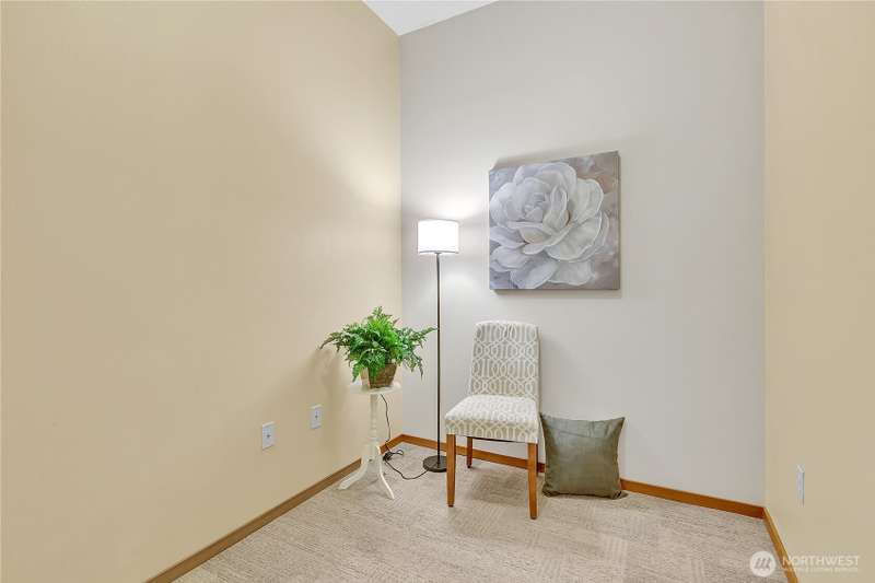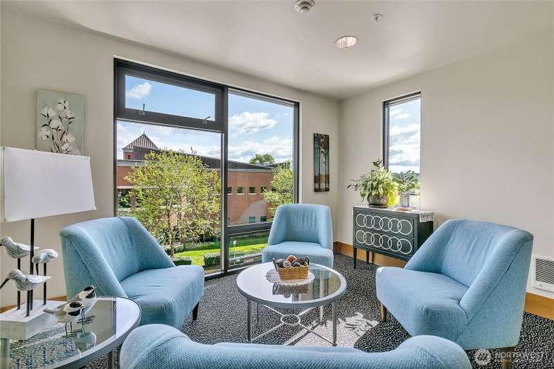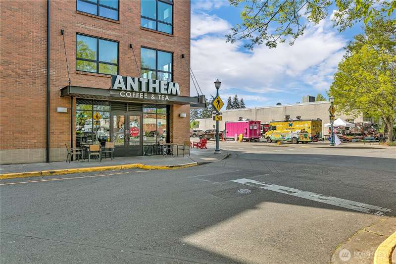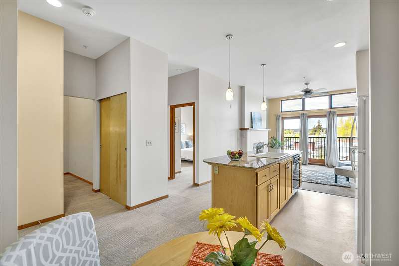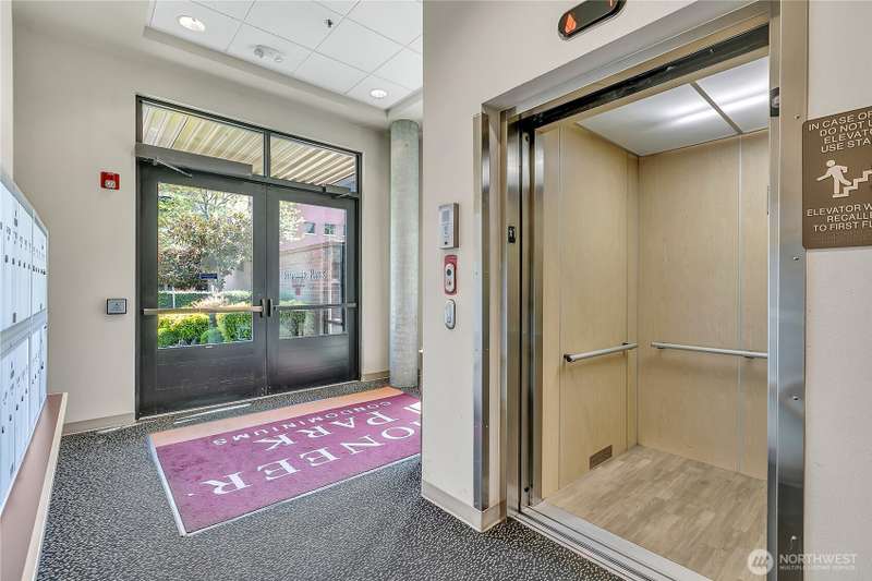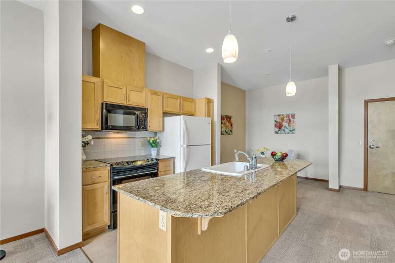 Modern living in the heart of downtown Puyallup! This one-bedroom, one-bath condo with den features a spacious layout, soaring ceilings & abundance of natural light. Two ceiling fans, and a see-through fireplace shared by the living room and primary bedroom. The kitchen boasts a large island with granite countertops & plenty of cabinets. There’s a stackable washer and dryer in-unit for added convenience. New bathroom flooring & sink faucet. Newer hot water tank. Enjoy secured, gated parking, elevator access, and a rooftop barbecue area. Located just steps from the library, parks, coffee shops, restaurants, fairgrounds, sounder train and the seasonal farmers market—this home offers comfort, style, and unbeatable walkability. A must see!