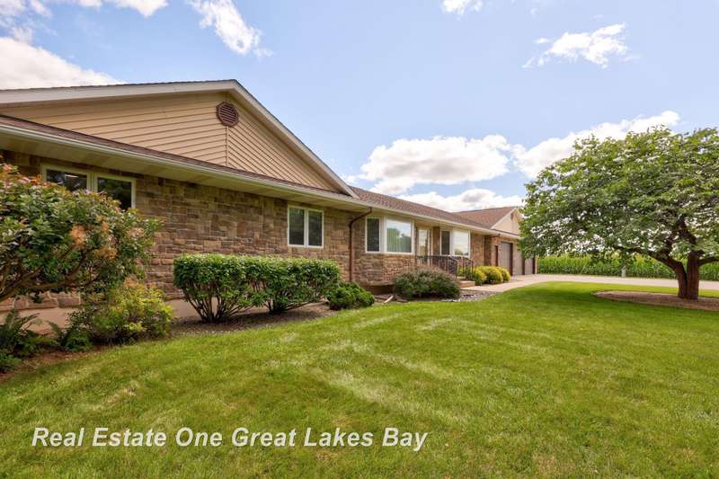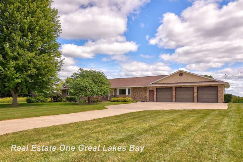 Nearly 2,600 sq. ft. Ranch on 47 Acres in Freeland Schools! This rare find offers a spacious 3 bedroom, 2.5 bath ranch with almost 47 acres of land--most of which is currently cropped, providing rental income or the potential to split into multiple parcels. The home itself sits on just under 3 acres, complete with a fenced yard, a large deck, a terrace, and a peaceful koi pond. Inside, you'll love the open floor plan with a generous living room and a bright sunroom off the kitchen featuring vaulted ceilings. The kitchen is designed with entertaining in mind and offers ample cabinet space along with a walk-in pantry. The large primary suite includes a full bath and a naturally lit walk-in closet, while the second and third bedrooms also feature walk-in closets. Between the primary bedroom and the family room, a versatile bonus room provides endless possibilities as a nursery, office, study, or playroom. Convenience is built into the design with a spacious main-floor laundry room that includes a mop sink and plenty of space for a freezer. The huge 3 car garage is equipped with hot and cold plumbing and a 220 outlet already installed. The basement is clean and open with eight-foot ceilings and exterior Bilco doors, offering excellent storage or potential for future finishing. Natural gas available at the road. Very clean and move-in ready, this property combines comfortable living with endless opportunity and investment potential.