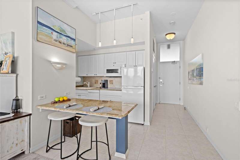 The most perfectly peaceful lagoon views are enjoyed from this first floor Junior Suite in Building 6. Unlike the other buildings, this building boasts 10' ceilings making it feel especially spacious while optimizing natural light and view. It is typical to see manatees, dolphins, paddleboarders and a variety of tropical birds from the terrace overlooking the turquoise lagoon water. Building 6 offers extra privacy as it is located across the street from the main entrance, but still close enough to enjoy the pool and beach without having to pack the car and drive anywhere. Updates to the residence include new washer/dryer, new dishwasher, new microwave, new glass shower doors, new commode, new closet shelving, and new fire alarm. This unit is not part of the hotel program; however, it can be rented out by the owner or a 3rd party vendor on a nightly basis. Owners can also become members of the Longboat Key Club to partake in the numerous Resort amenities (Golf, Tennis, Restaurants, Fitness Center, Marina) if they still want to enjoy the benefits of owning in a Resort community without being part of the hotel program.