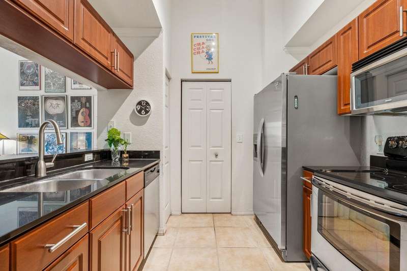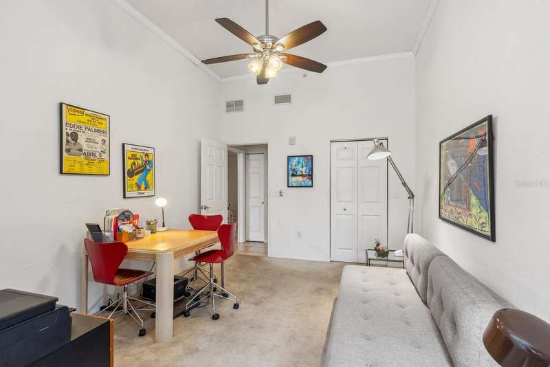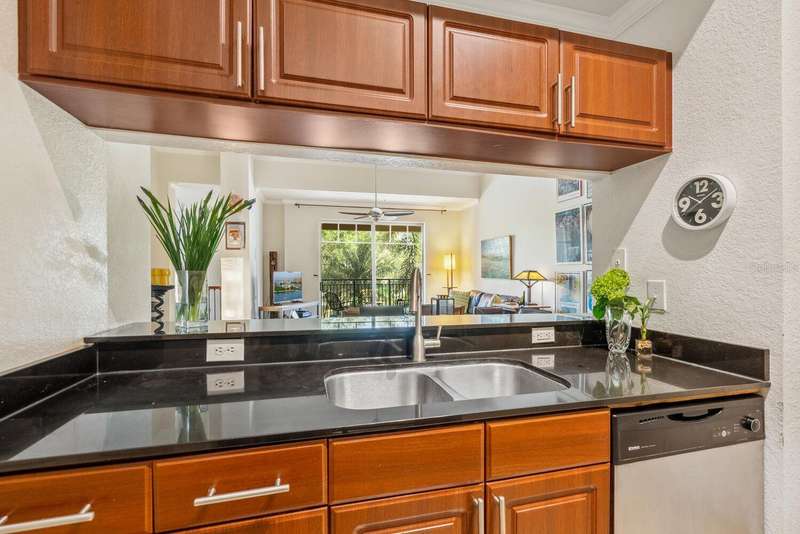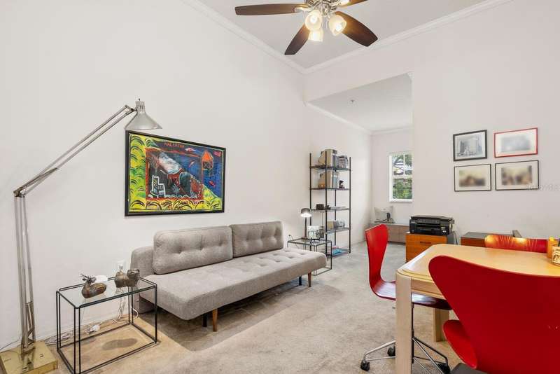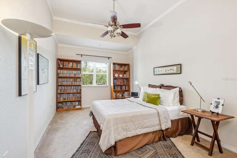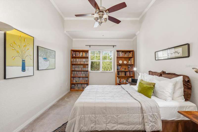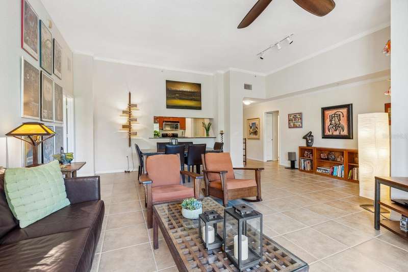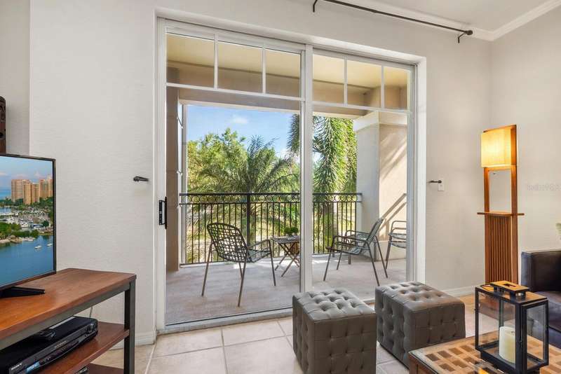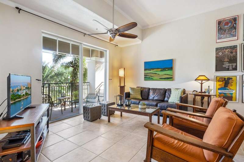 Welcome to Broadway Promenade, where the luxuries of downtown living meet unbeatable affordability! This beautiful 2-bedroom, 2-bath residence boasts one of the most unique floor plans in the building, featuring two entrances. Enter through your private street entrance, bypassing the main entry, ascend stairs to your stylish condo, all on one comfortable level. You'll be welcomed by soaring 11-foot ceilings, an expansive great room perfect for entertaining, two generous master suites, each with its own oversized ensuite bathroom, & a tranquil balcony providing stunning views of the adjacent city park. This exceptional unit is conveniently located closest to the inviting pool & clubhouse, ensuring easy access to the pool area, BBQ grills, spa/hot tub, and vibrant social gatherings in the clubhouse. Two designated parking spaces in the under-building garage add to the convenience. Abundant amenities include 24-hour concierge, library, billiards room, fitness center, saunas, heated pool & spa, and outdoor dining areas, all with some of the most competitive condo fees in downtown Sarasota. Guest suites for visitors, pets welcome too! Just a short stroll to Publix, downtown coffee shops, restaurants, & boutique shopping. Across the street from city park & the expansive 53-acre park, The Bay, hosting a variety of outdoor events. Experience luxury living within reach!