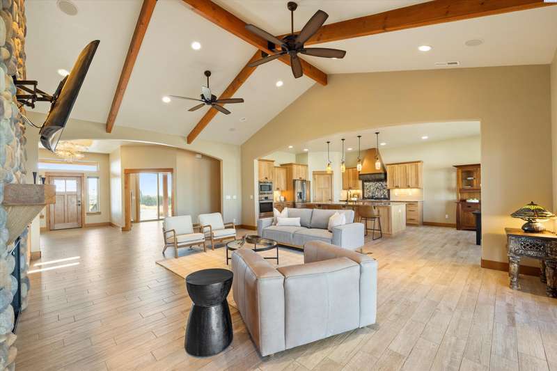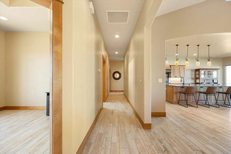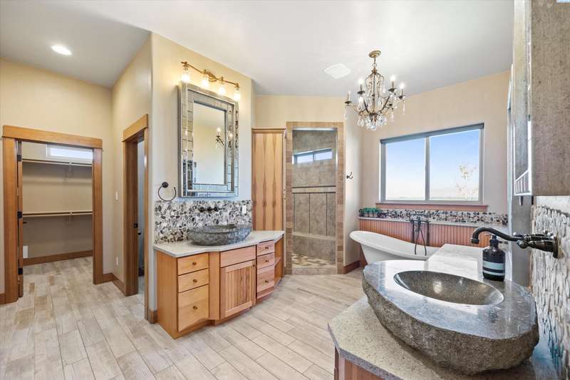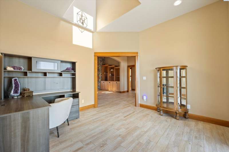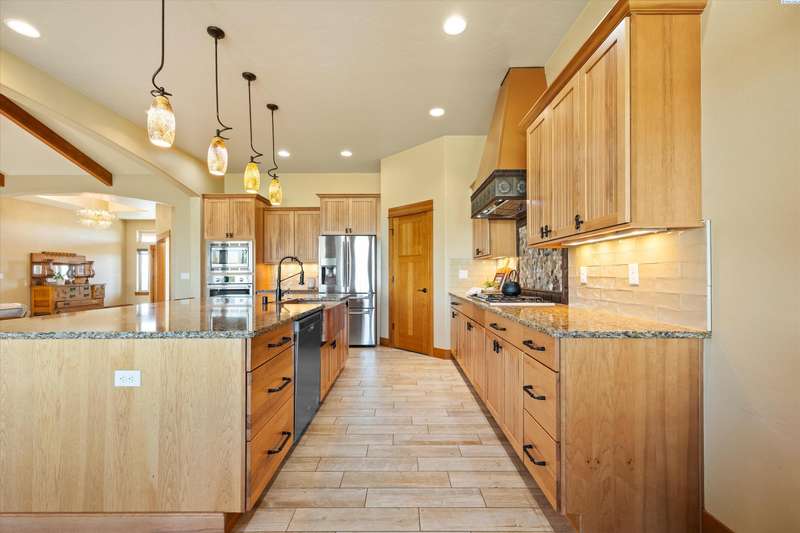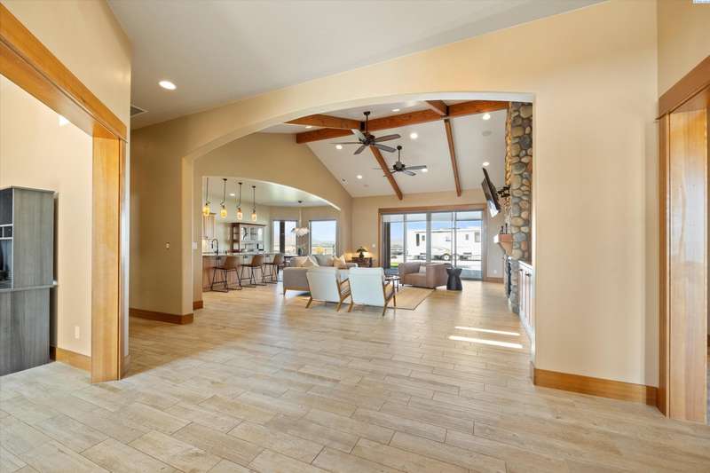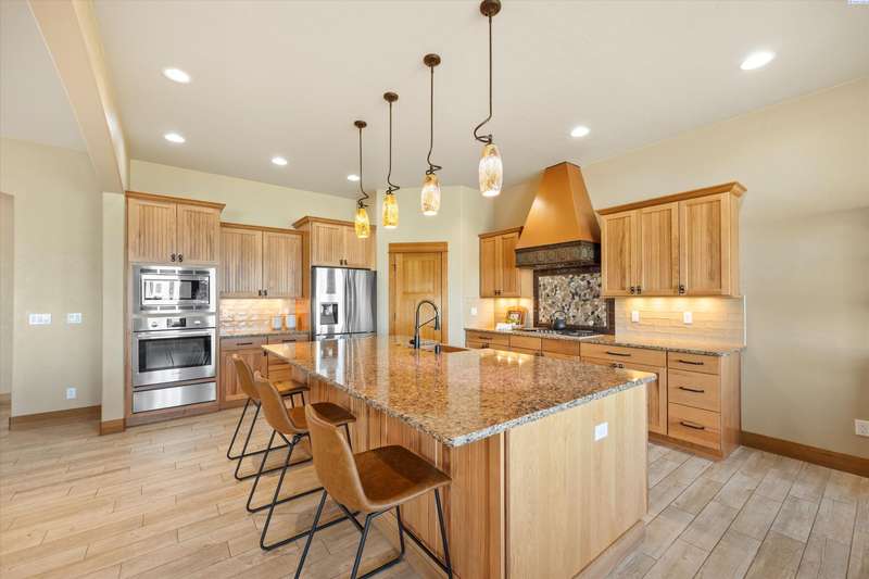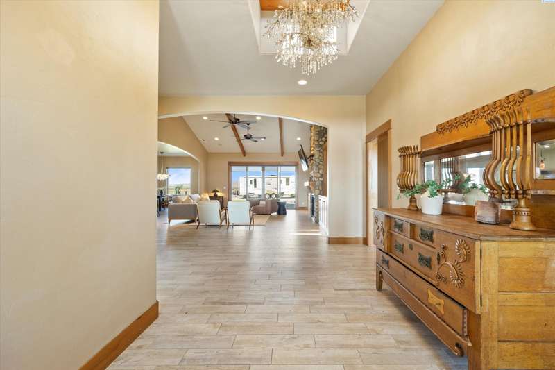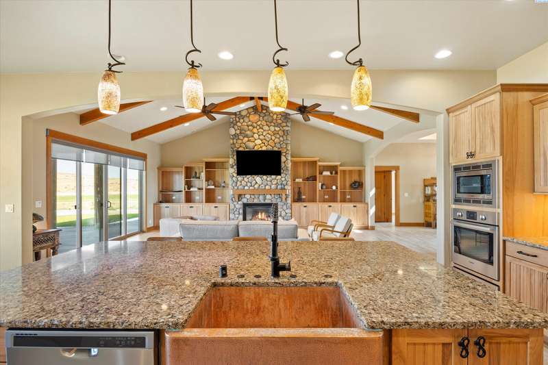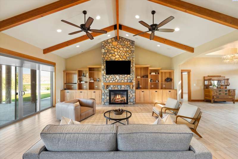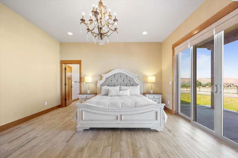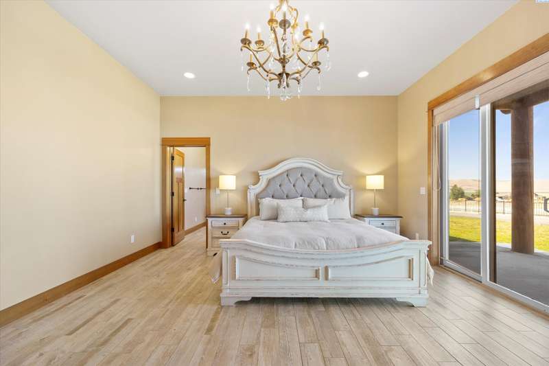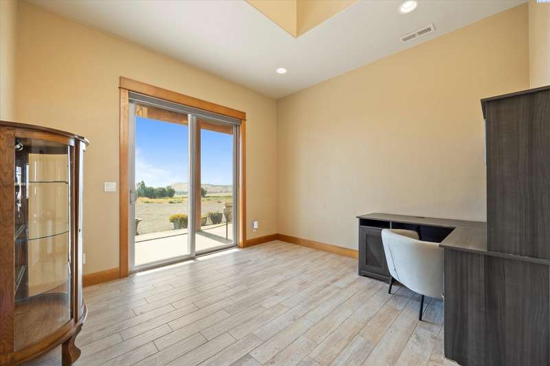 MLS# 286524 This beautiful 2,860 sq ft home sits on 9.22 acres, fully enclosed with classic white vinyl fencing, and offers breathtaking territorial and mountain views. Built in 2016, the home features an open-concept layout with tile floors, a cozy fireplace, and large windows that flood the space with natural light. The gourmet kitchen boasts granite countertops, stainless steel appliances, and a spacious island—perfect for entertaining. The primary suite includes a luxurious en-suite bath with a soaking tub and walk-in shower. Step outside to enjoy a covered patio, ideal for relaxing or watching the sunset over your acreage. Ample space for horses, livestock, gardens, or additional outbuildings, with room to make it your own. Located in the desirable West Richland area, this property combines country living with easy access to local amenities.