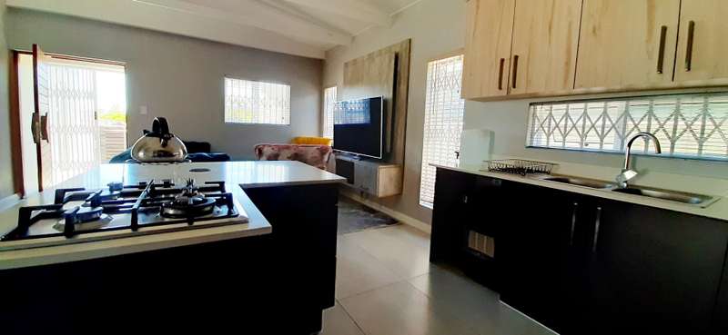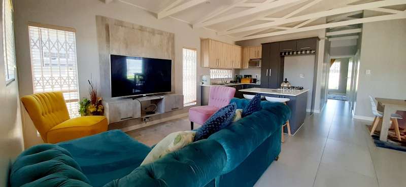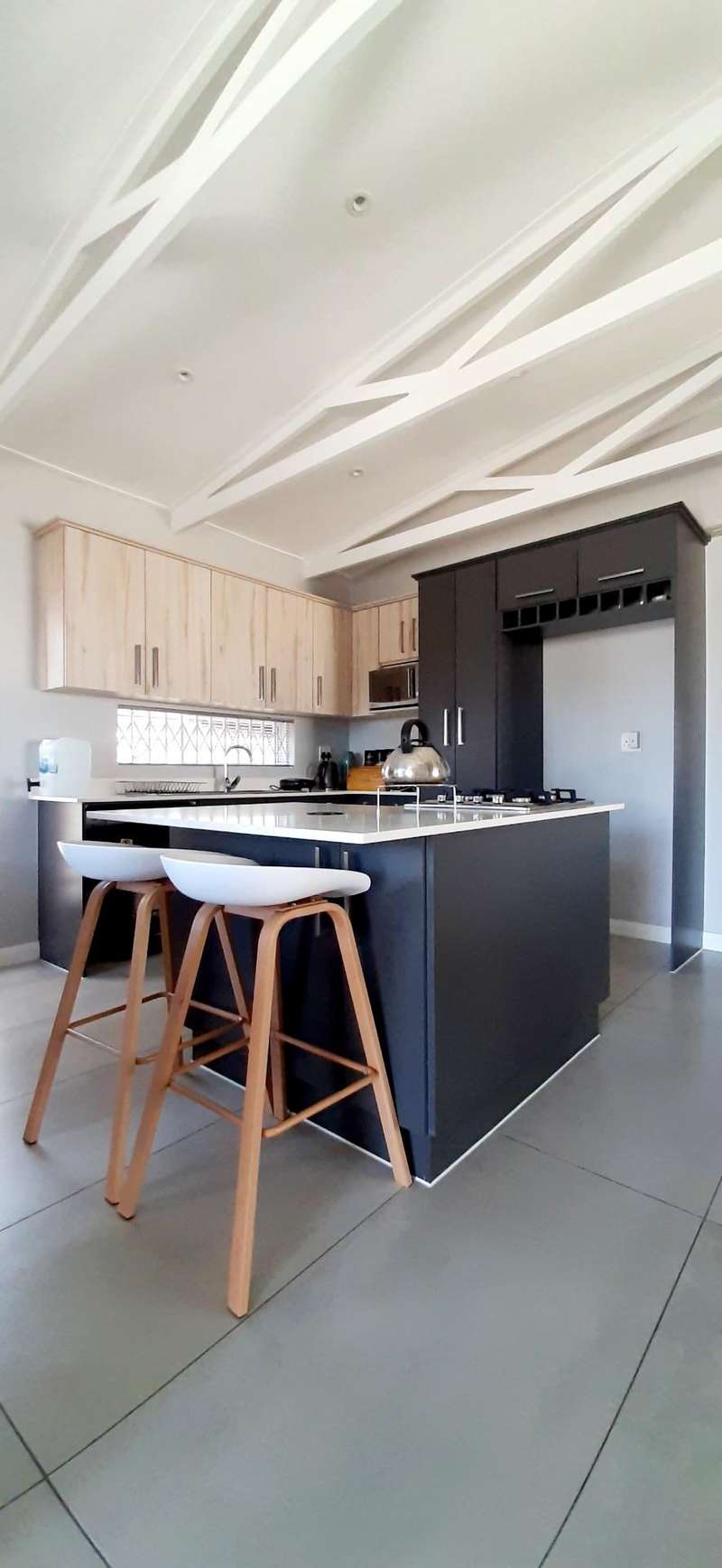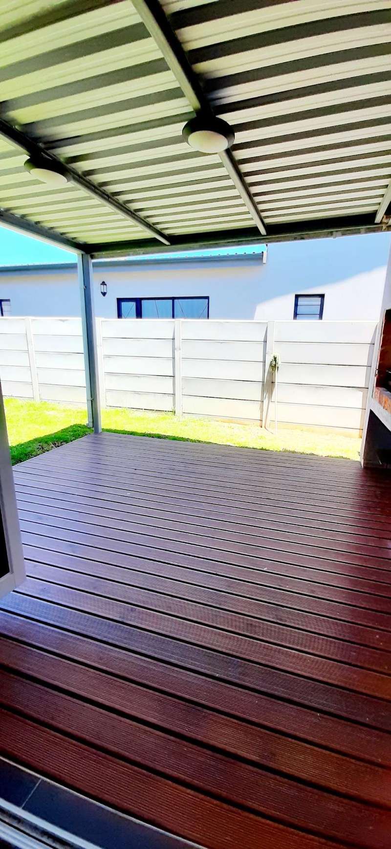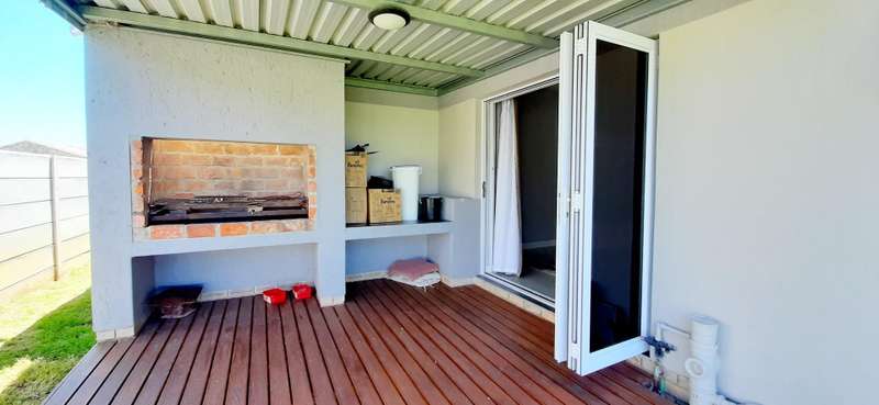 As you enter, you are greeted by the open plan lounge, kitchen and dining room. The living area comes complete with a fitted tv unit, while the dining area boasts stacker doors and flows out to a covered deck with outdoor braai and entertainment area.