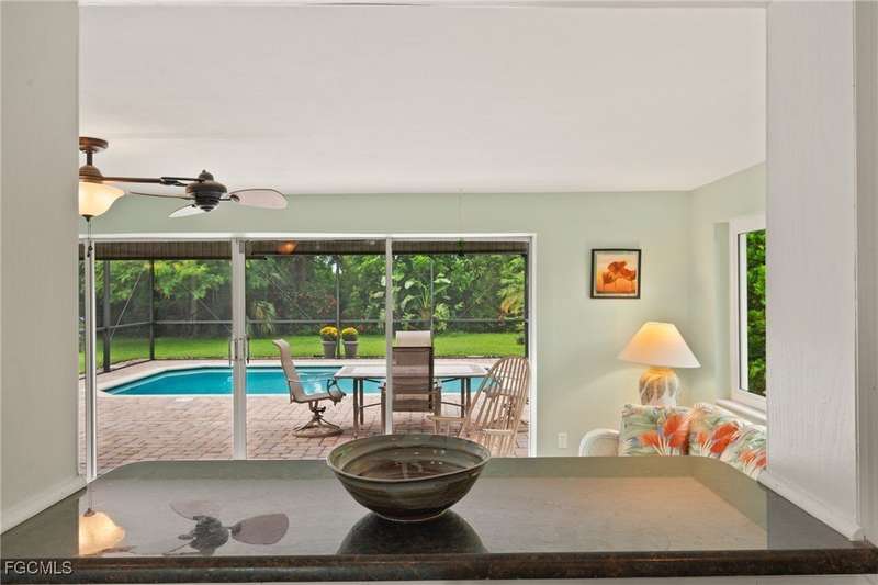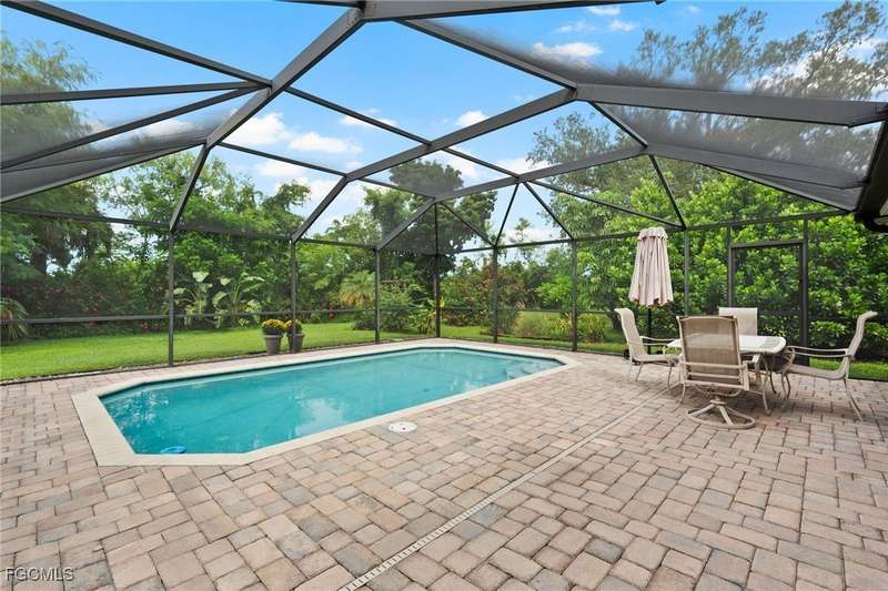 Welcomed to this Meticulously Maintained Home in the Rotary Park Corridor. This Charming 3 bedroom, 2 bathroom home is just shy of 1800 square feet. The kitchen features Granite Countertops and Stainless Steel Appliances (the oven is regular, convection & air fryer all in one). Dishwasher added 2025, Stove added 2022 (GE), Microwave added 2021 (GE), Refrigerator added 2022 (LG). Relax in your Pool that Overlooks the Serene Backdrop of 100's of acres of Zoned Preserve. Perfect place to unwind and see all that Mother Nature has to offer. Pool was added 2017, Pentair Pool Pump new 2023, Super Screen added to cage 2022. Tile Flooring was added to the home in 2023. The Primary Ensuite was completely updated in 2023. For additional piece of mind the Roof was added 2018, Garage Door(Hurricane Rated) / Opener added 2019, Hurricane Rated Windows added 2016. Front loading Washer/Dryer added 2022 (Samsung). The Garage Floor has been Polyaspartic coated in 2024 for extra durability. Brand New Water Heater added 2024. Gutters were added to the home in 2021. HVAC added 2024 (Raised 3 Ft off the ground), HVAC Duct work completely redone in 2017. Ideally this home is situated approximately 2.5 miles from Tarpon Point Marina. Where you'll find a plethora of restaurants, shopping, and boating opportunities. When I say this house is move in ready, I mean it.