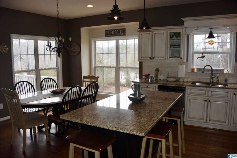 Beautiful custom built home in historic Alaga Landing. Amazing views of Lake Mitchell throughout the 2800 sq ft home. Main level features open concept living with family room, eat-in kitchen and stone fireplace. Kitchen with an island with bar seating and ample cabinet storage. Master suite has a fabulous view of the lake, walk-in closet and large master bath with double vanities. Also on the main level a bedroom with ensuite bath, a half bath for your guest and laundry room. Upstairs there is a spacious bedroom room and walk-in attic. The basement is a great place to hangout, sleep in the bedroom with a full bath. This home features multiple outdoor sitting areas to enjoy the lake view with the deck off the kitchen and private patio area overlooking the 120 ft of waterfront. A private boat dock features one boat stall with lift, covered and open deck and storage closet for your play things. Welcome Home!
