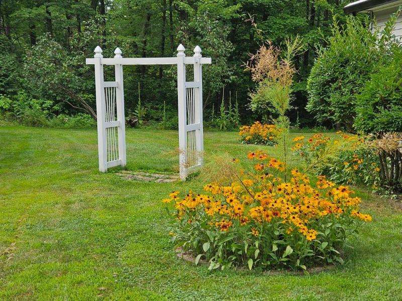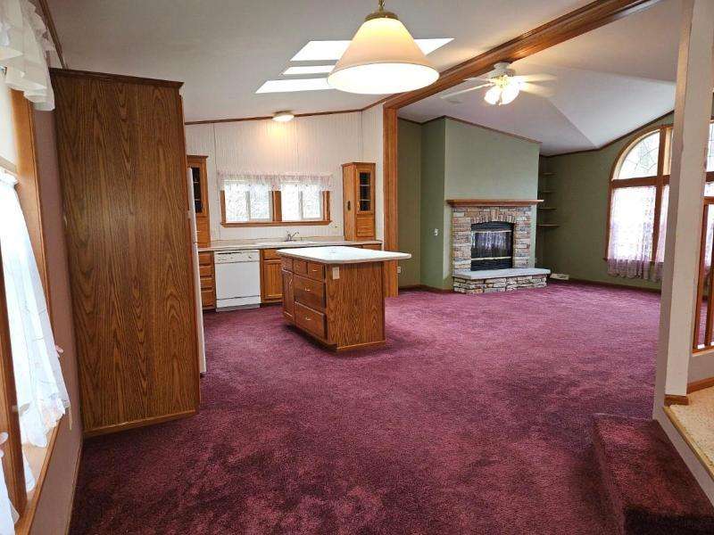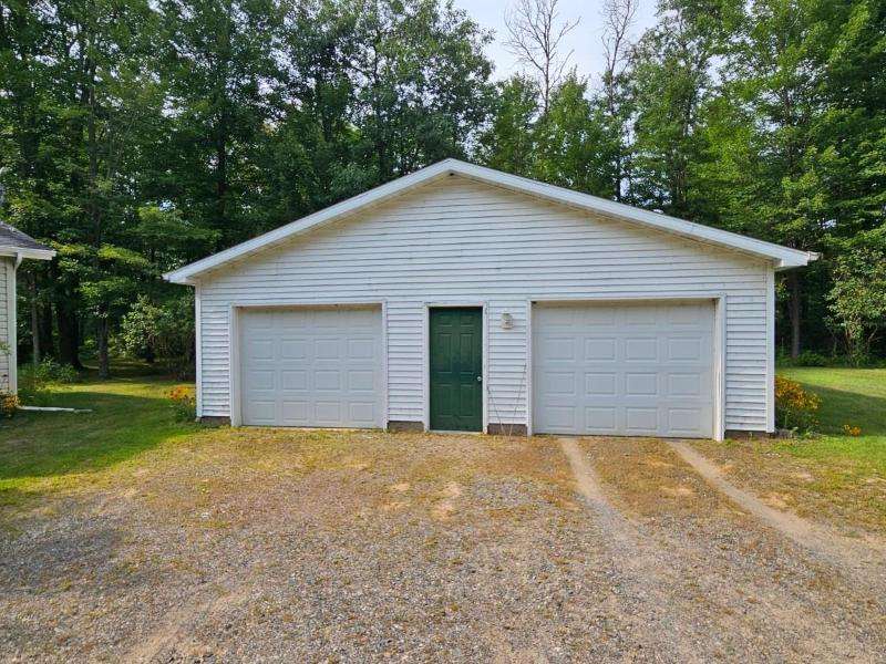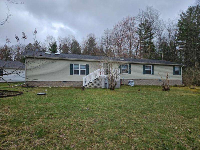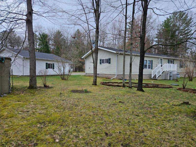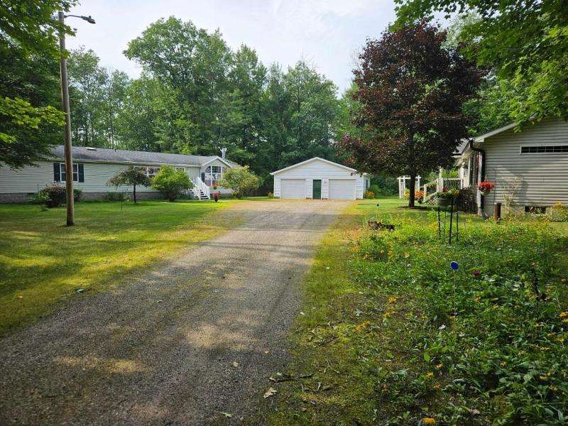 Unique opportunity to own adjacent properties with shared driveway access. Built in 2003, this 2100 square foot manufactured home is located on a 2.75-acre partially wooded lot with an oversized 2-car detached garage and storage shed. Inside the home, step down into the vaulted family room which features a woodburning fireplace and connects to a spacious, open concept kitchen that offers a center island and pantry. A cozy dining area overlooks the scenic backyard and woods, while a larger dining space is a step up near the formal front living room. The primary bedroom suite provides two walk-in closets and a huge bathroom with shower. There are two additional nicely sized bedrooms and another smaller bedroom that was used as an office. The laundry/utility room has access to a small deck and backyard. This home sits on a crawlspace but offers ample storage. Appliances are included.
