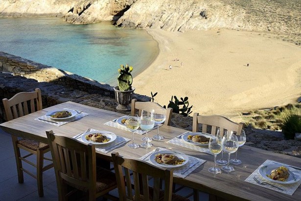 Welcome to this stunning waterfront villa located in the Fokos area of Mykonos Island, Greece. Situated just 100 meters away from the picturesque Fokos Bay, this luxurious property offers a perfect blend of spacious living, breathtaking views, and exclusive amenities.